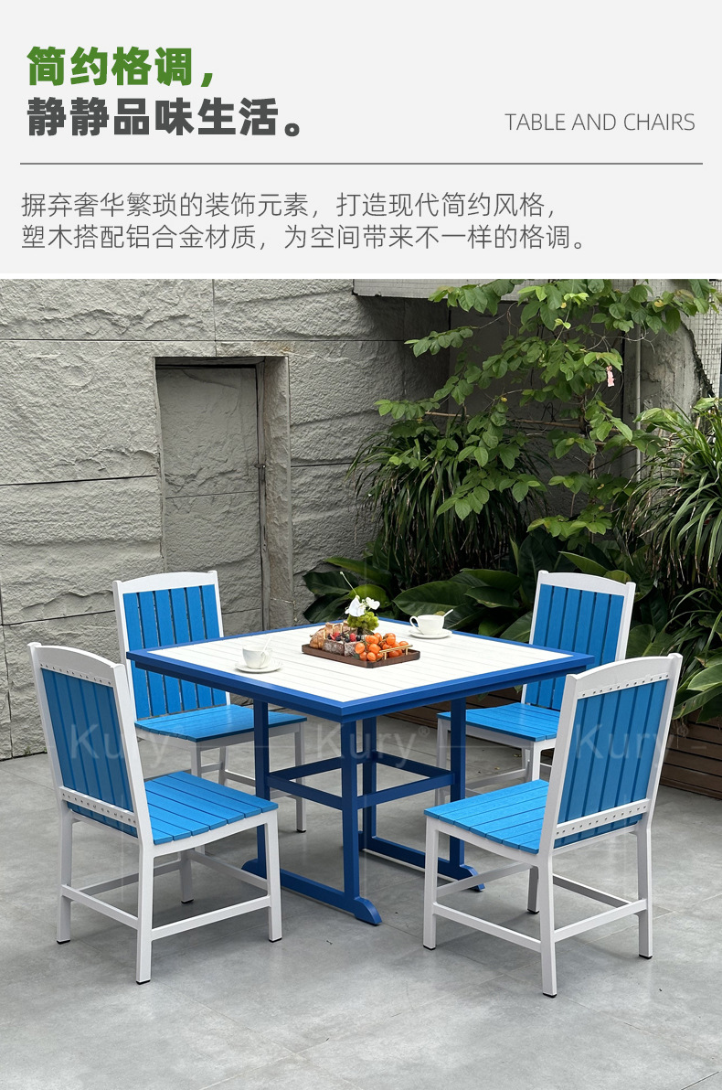 공장 아울렛 쿠리 야외 알루미늄 합금 플라스틱 목재 식탁 및 의자 호텔 야외 야외 야외 레스토랑 커피 숍 식탁 및 의자