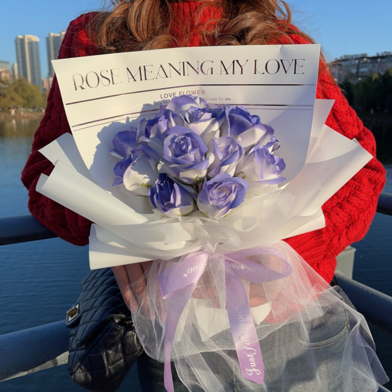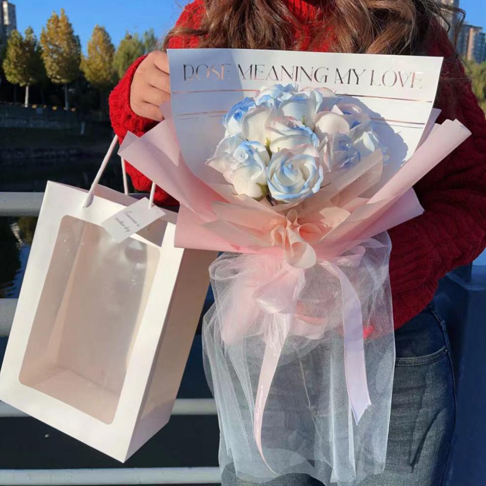 그물 빨간 장미 크리스마스 꽃다발 발렌타인 데이 어머니 생일 선물 꽃다발 여자 친구 완제품 배달 보내기