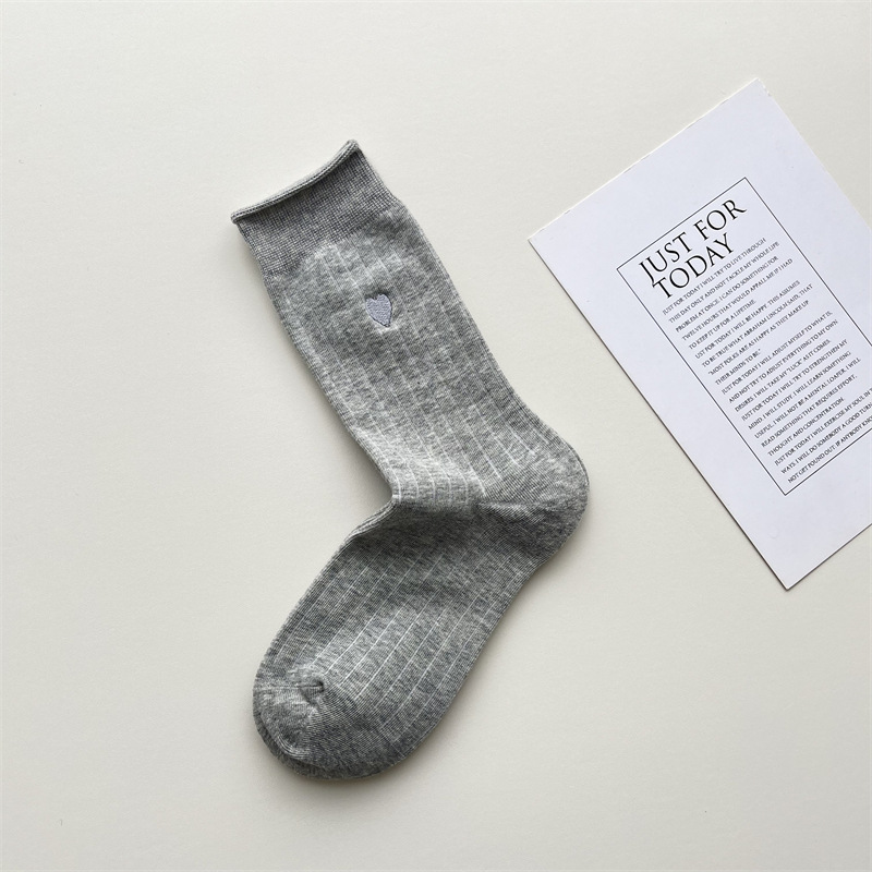 한국식 아카데미 스타일 수놓은 미드 튜브 양말 가을과 겨울 컬링 느슨한 코튼 양말 여자 간단한 올매치 스트라이프 스택 양말