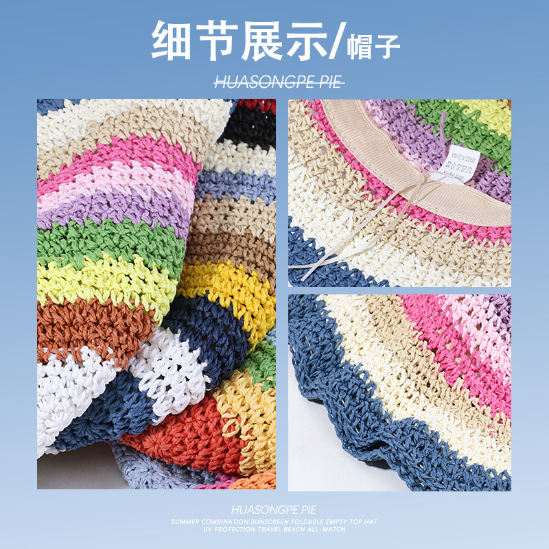 레이스 레이스 스트로우 모자 여름 여성 모자 선 스크린 학생 야외 차양 모자 스트랩 비치 레인보우 태양 모자스토어 가기