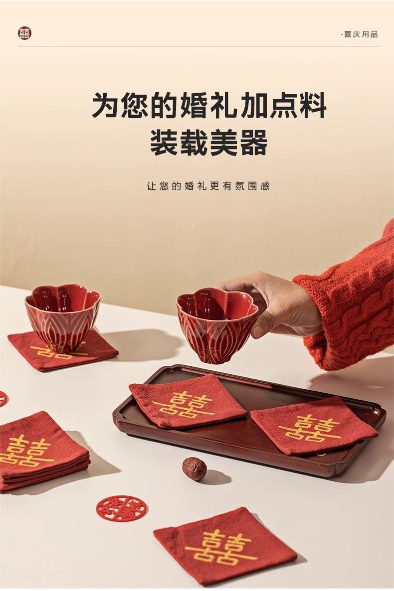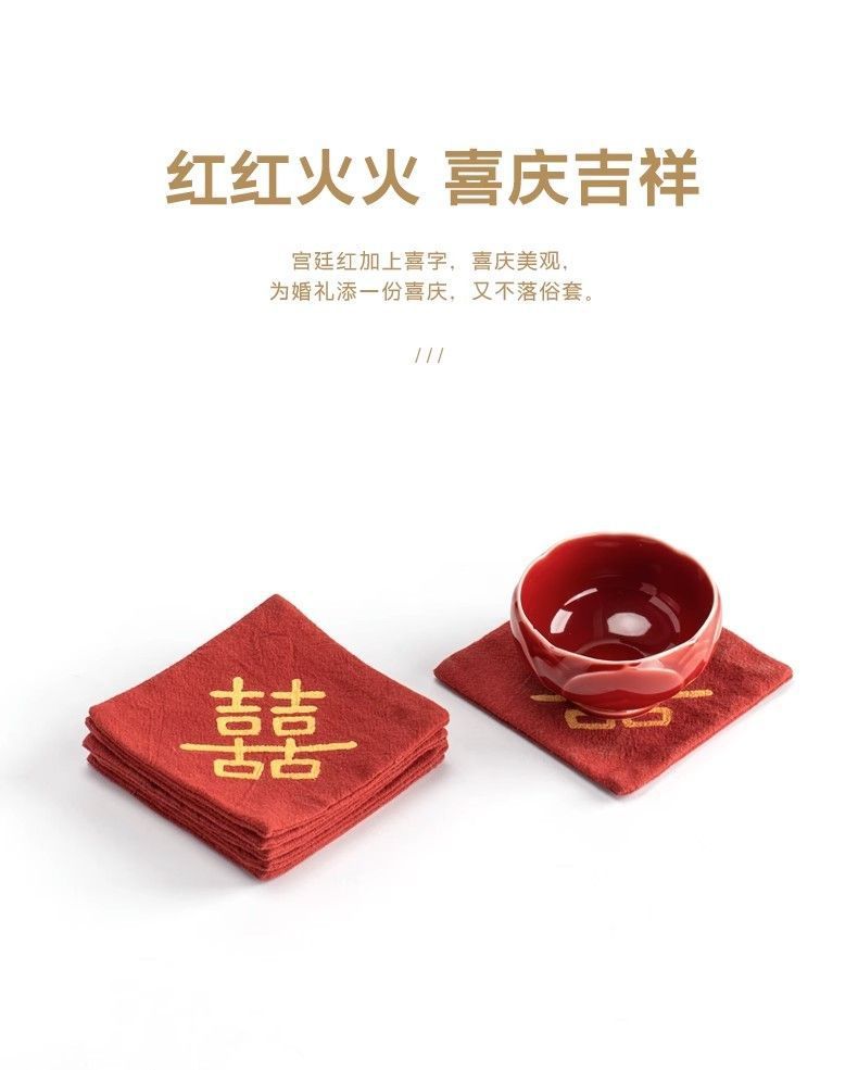 레드 코스터 해피 캐릭터 코스터 웨딩 티 컵 홀더 웨딩 룸 장식 웨딩 사진 천 티 홀더 미끄럼 방지