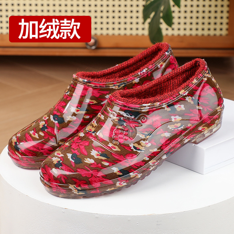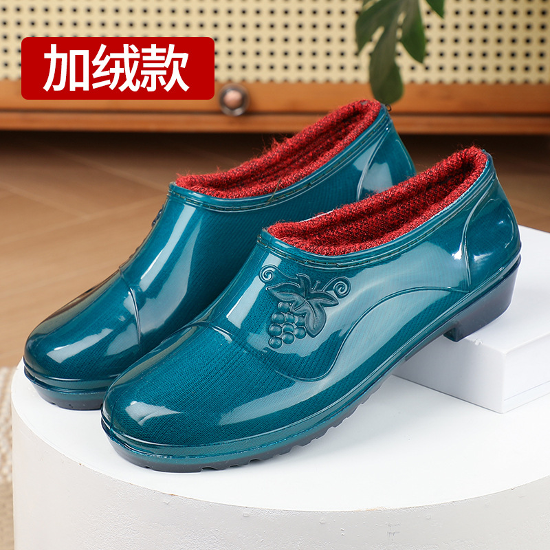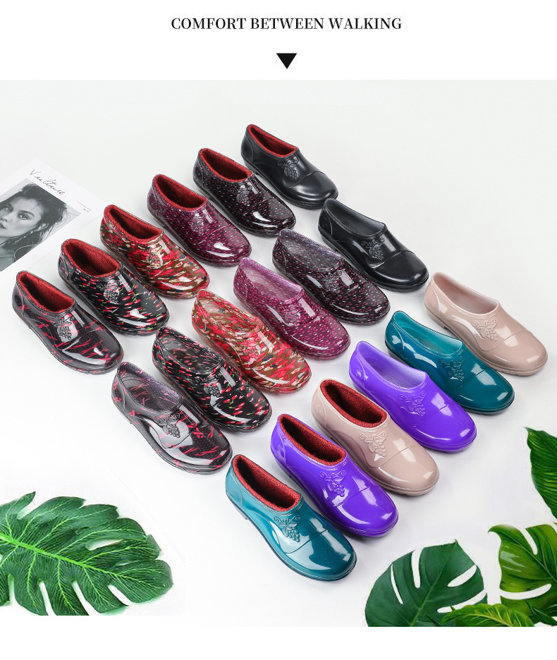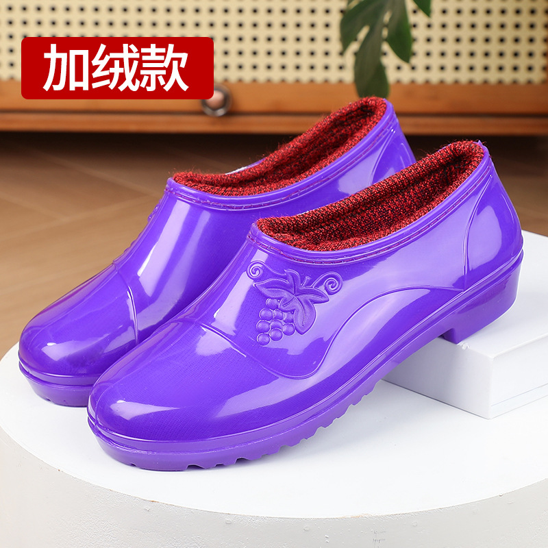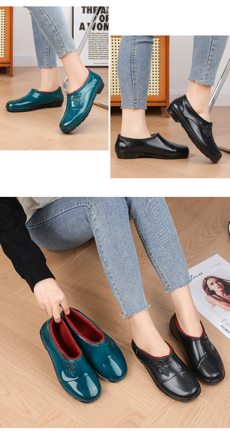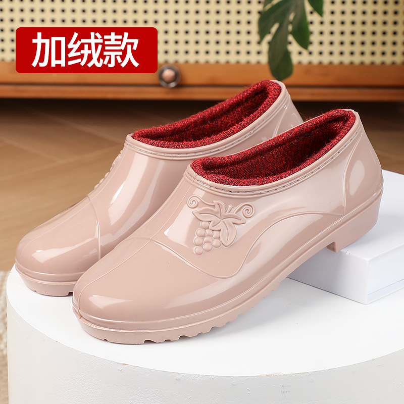 장화 여성용 짧은 튜브 봄과 가을 미끄럼 방지 워터 부츠 주방 작업 두꺼운 밑창 장화 고무 신발 방수 따뜻한 면화 신발 여성용