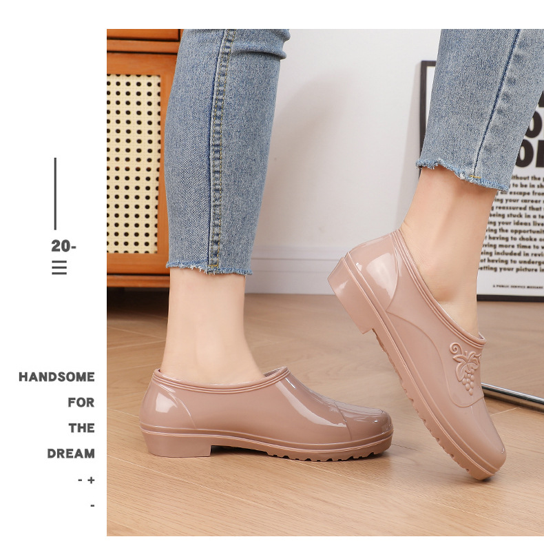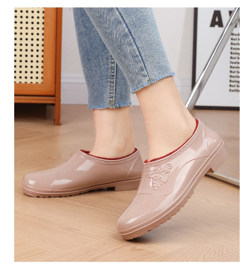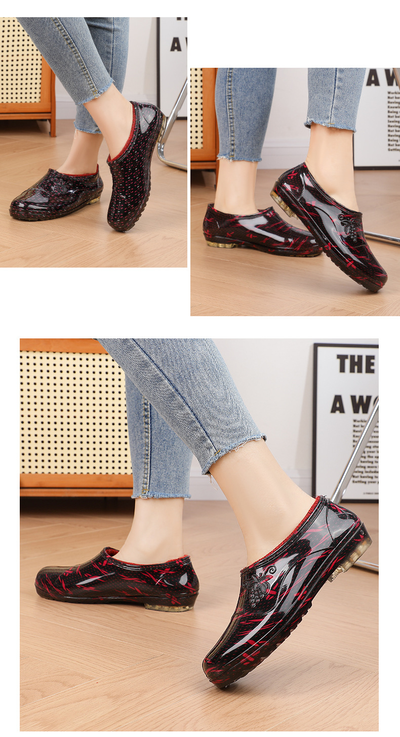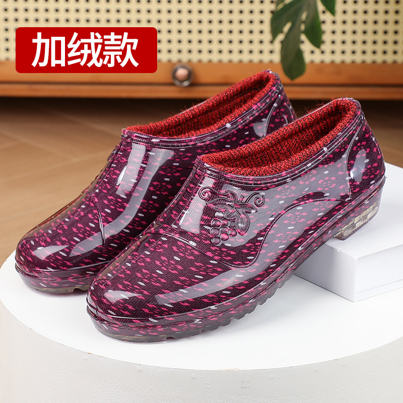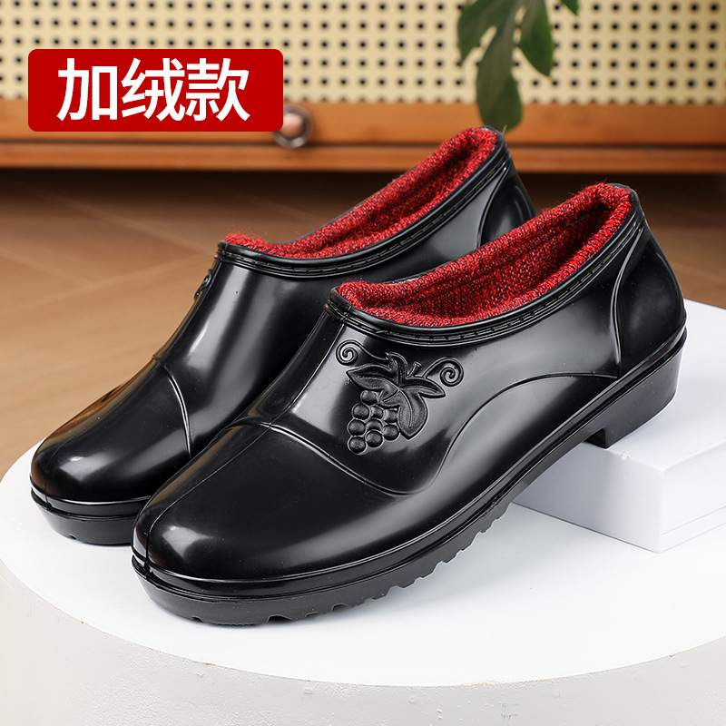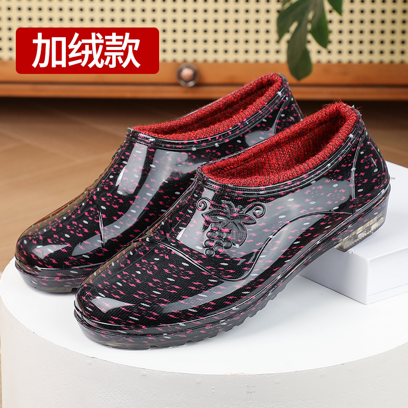 장화 여성용 짧은 튜브 봄과 가을 미끄럼 방지 워터 부츠 주방 작업 두꺼운 밑창 장화 고무 신발 방수 따뜻한 면화 신발 여성용