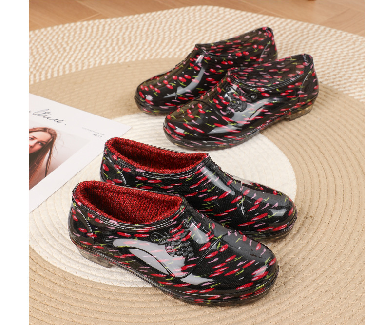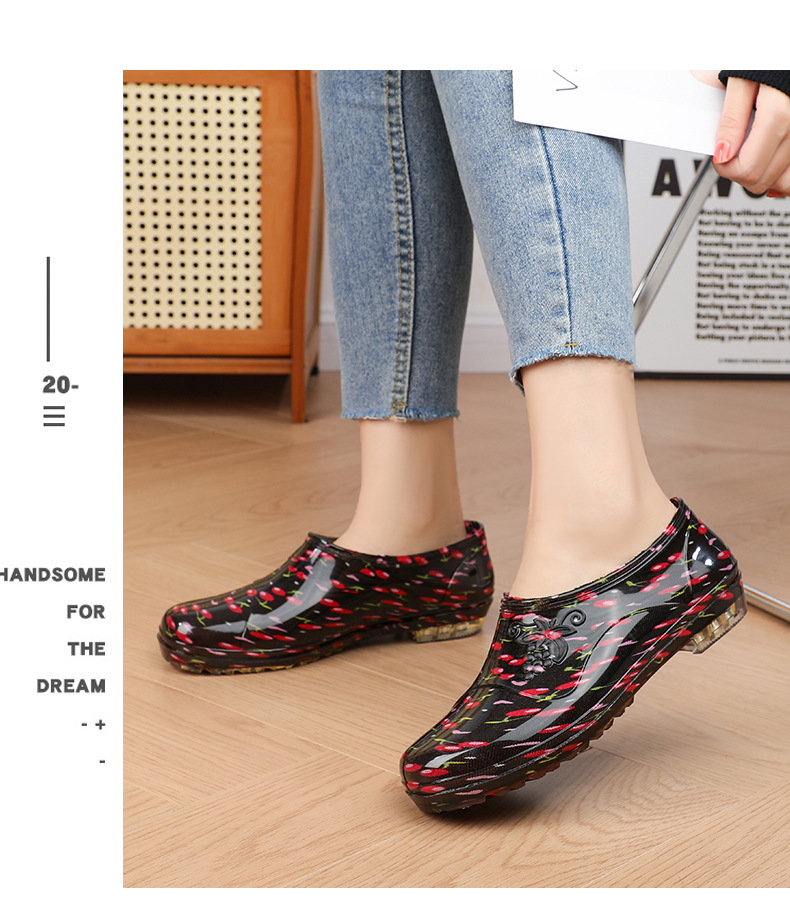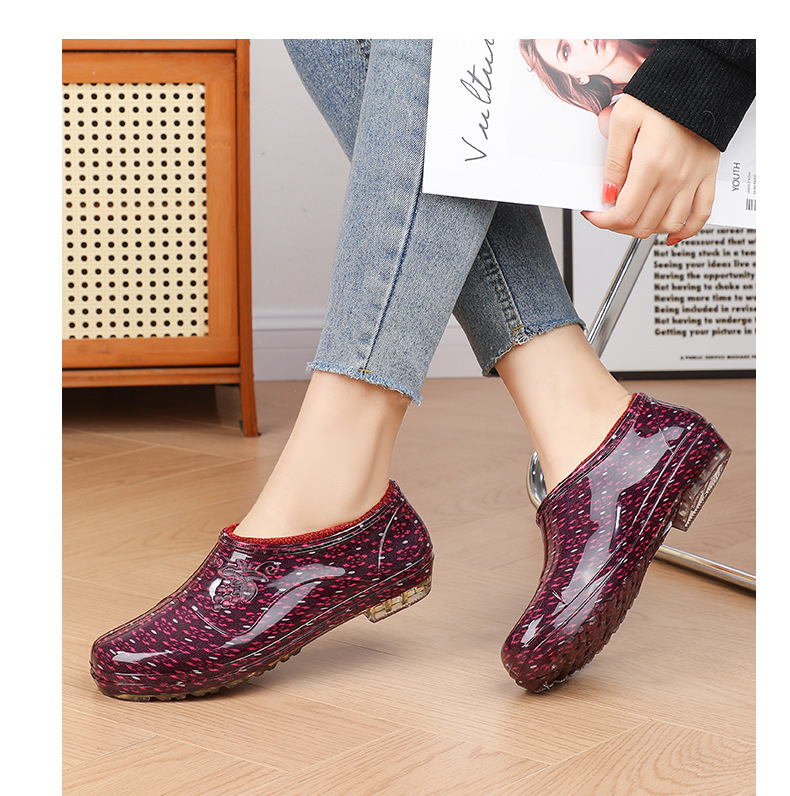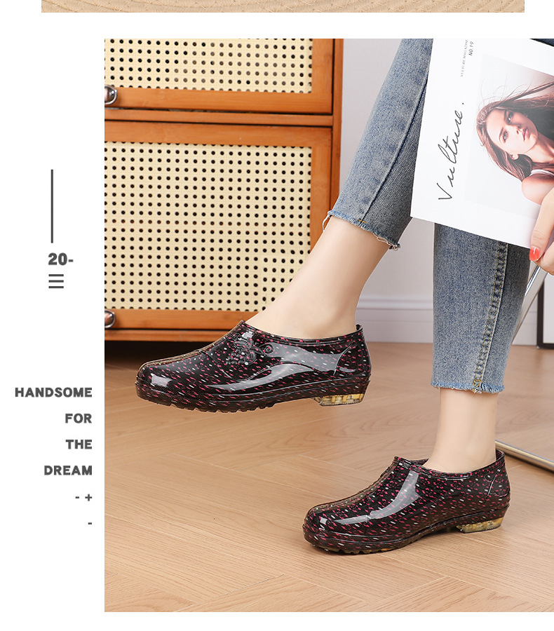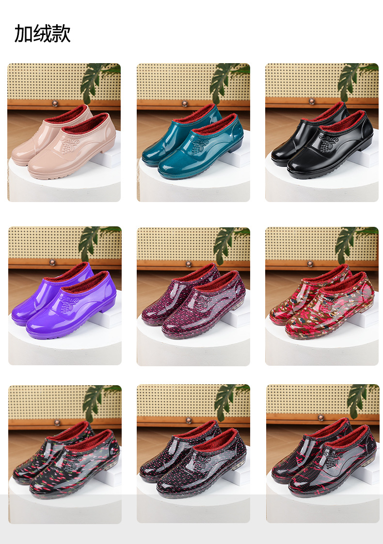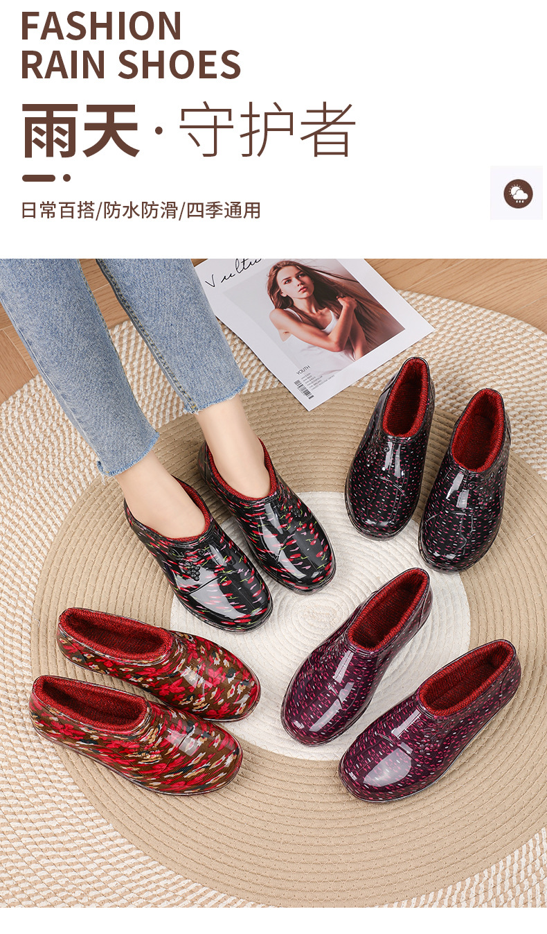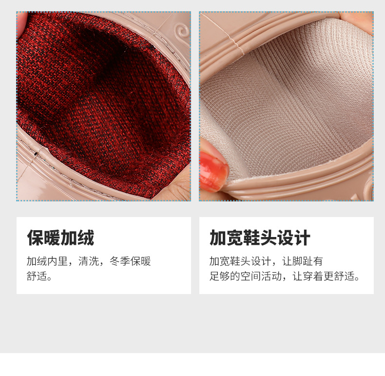 장화 여성용 짧은 튜브 봄과 가을 미끄럼 방지 워터 부츠 주방 작업 두꺼운 밑창 장화 고무 신발 방수 따뜻한 면화 신발 여성용스토어 가기