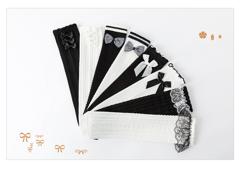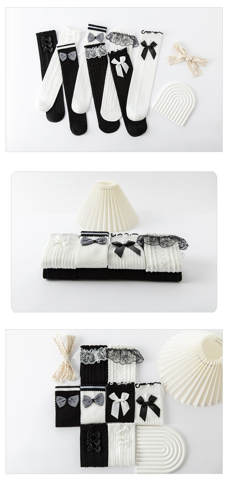 • 흰색 리본이 달린 검은색 양말 (T360)