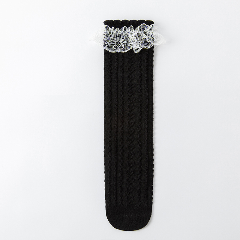 어린이 양말 봄과 가을 레이스 소년과 소녀의 뼈없는 중간 길이 양말 가을 빈티지 단색 아기 긴 튜브 스택 양말