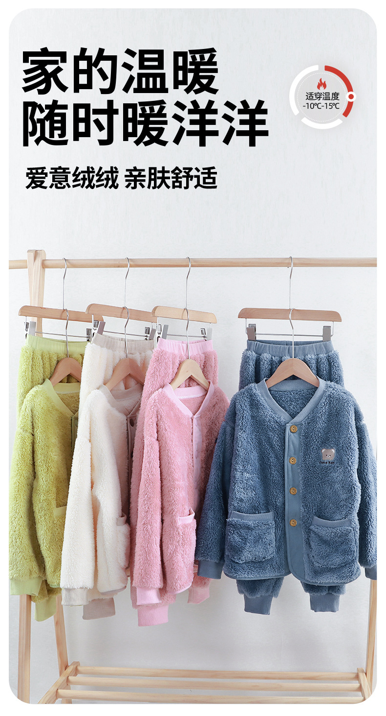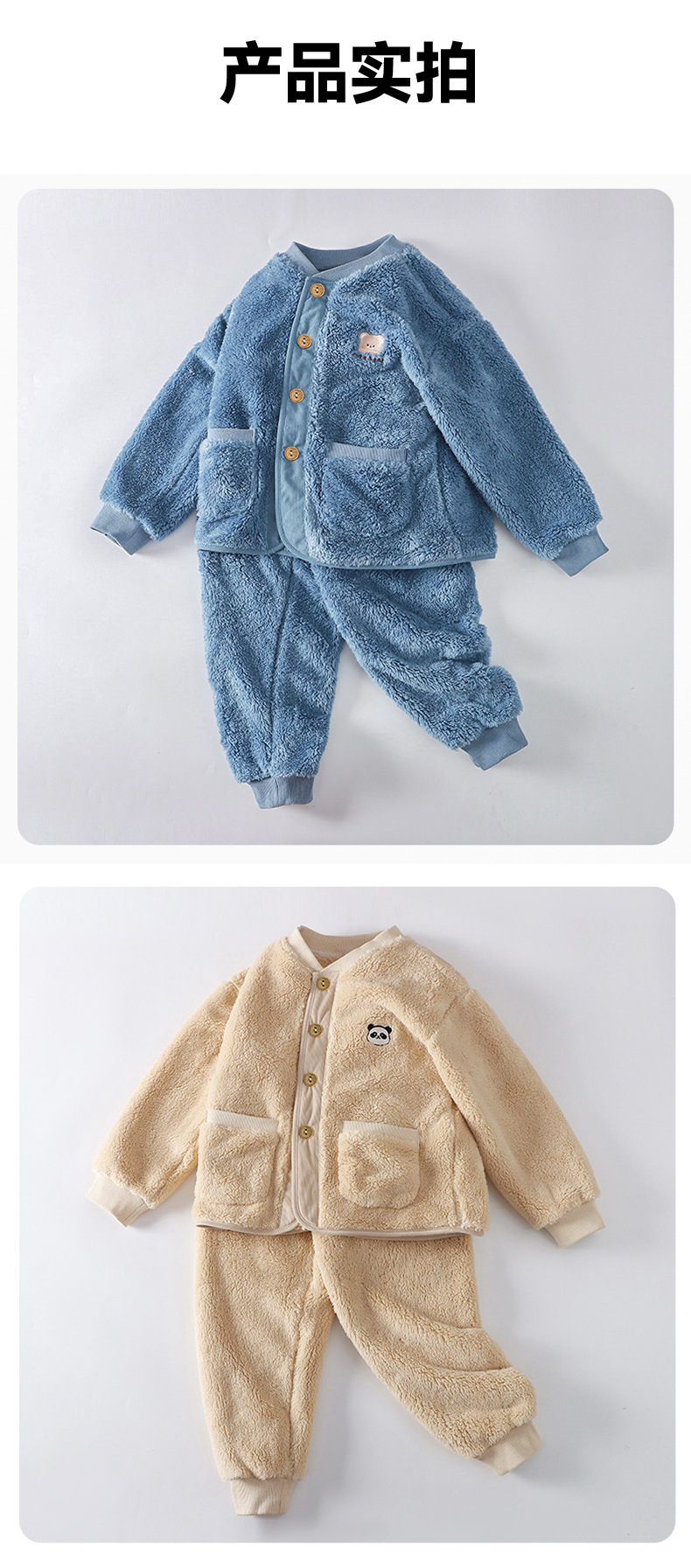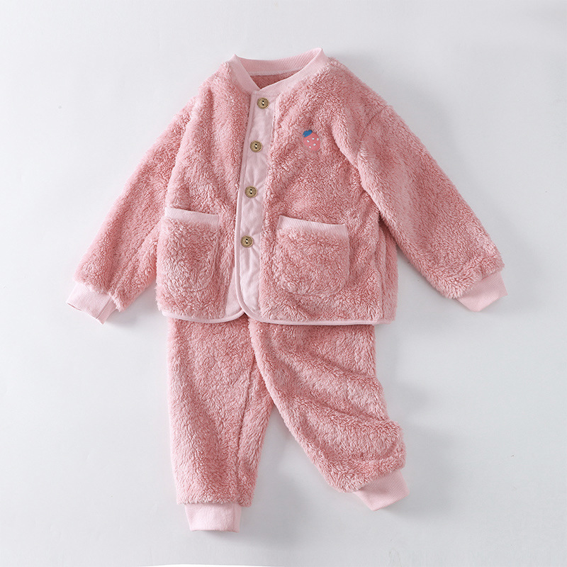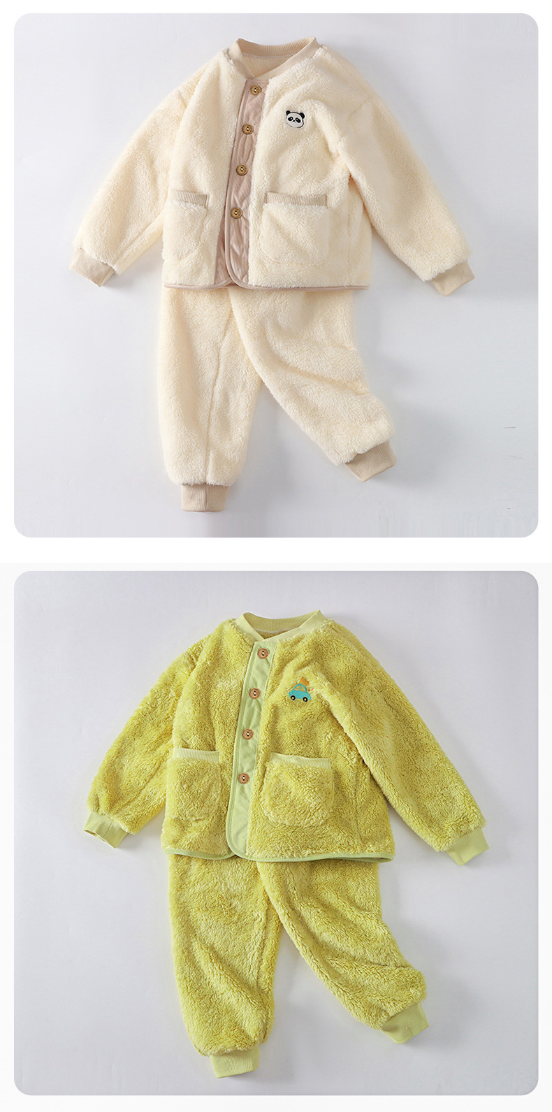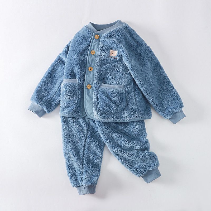어린이 잠옷 카디건 소년 가을과 겨울 소녀 플란넬 자수 두꺼운 아기 홈 의류 세트