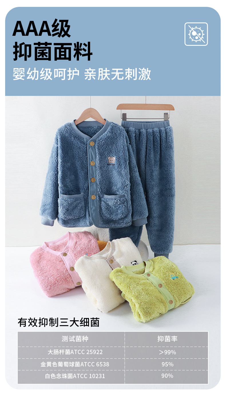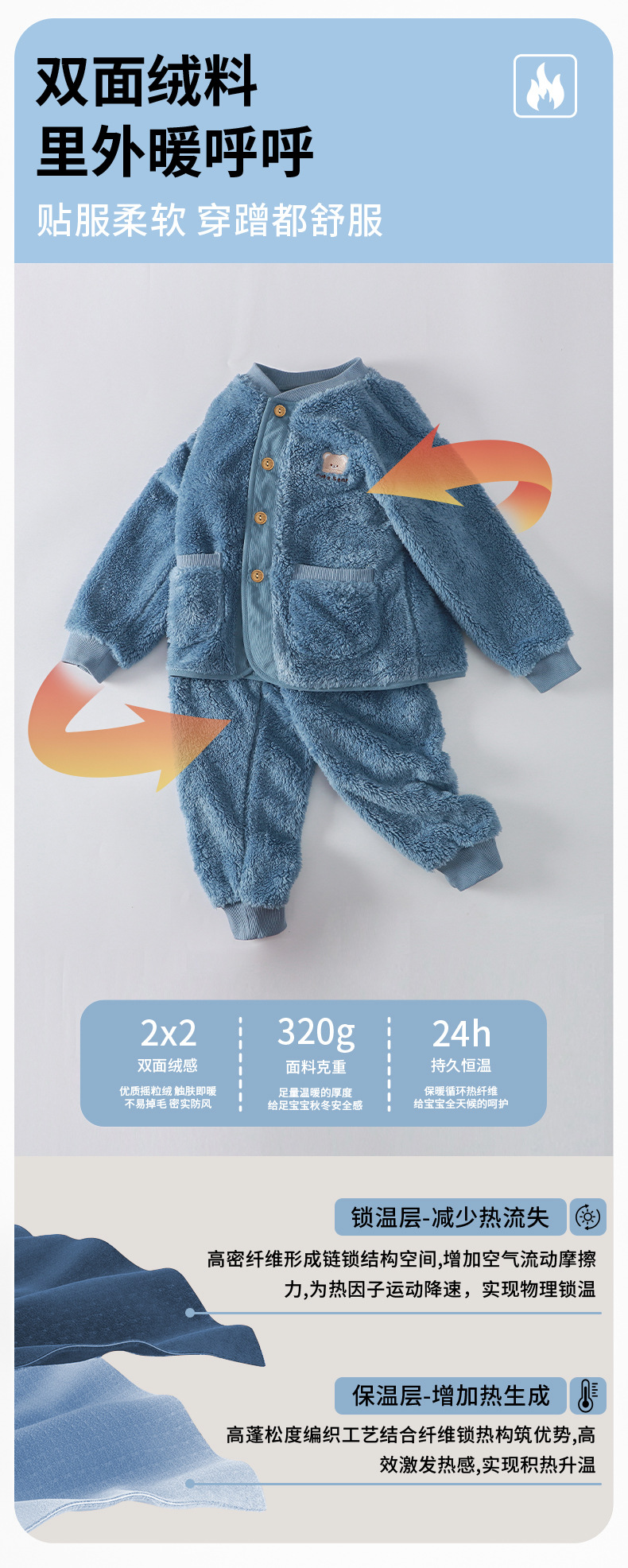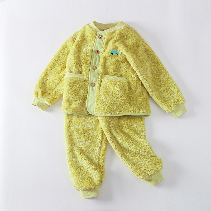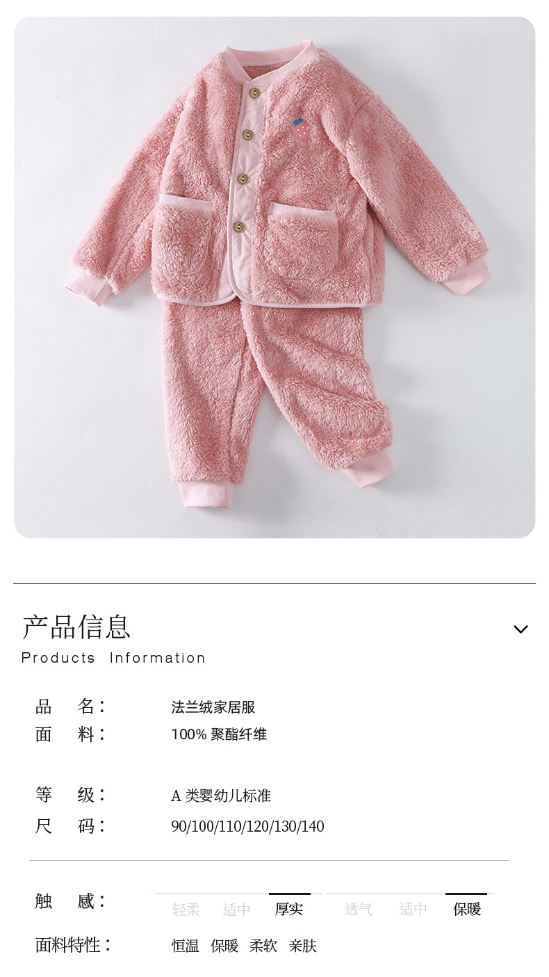 어린이 잠옷 카디건 소년 가을과 겨울 소녀 플란넬 자수 두꺼운 아기 홈 의류 세트