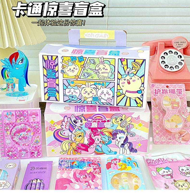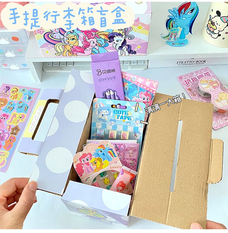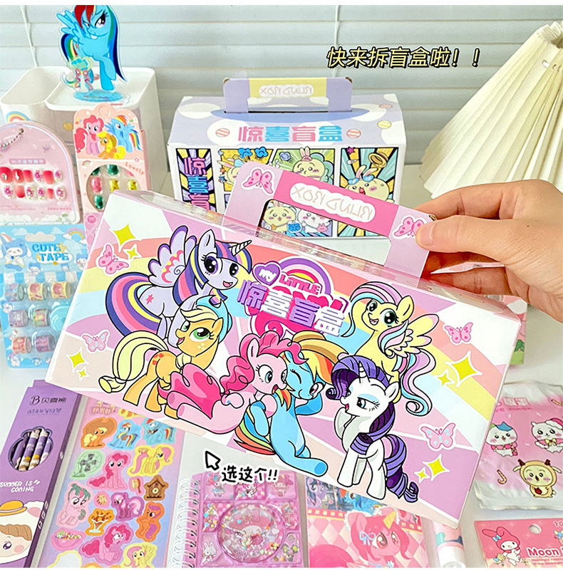 새로운 유니콘 포니 폴리 문구 블라인드 박스 귀여운 만화 어린이 깜짝 선물 가방 세트 학생 선물