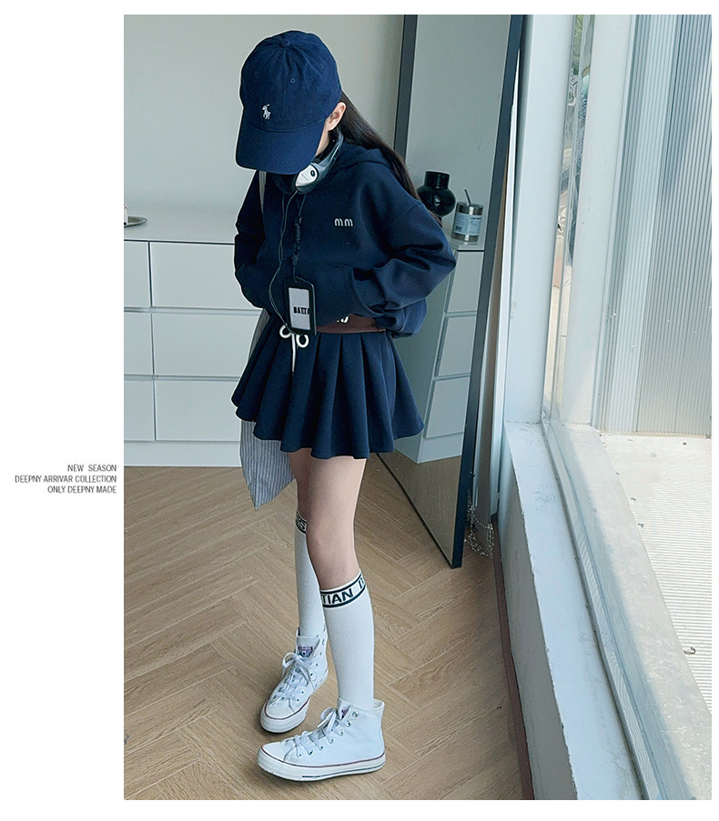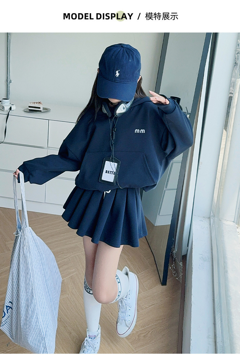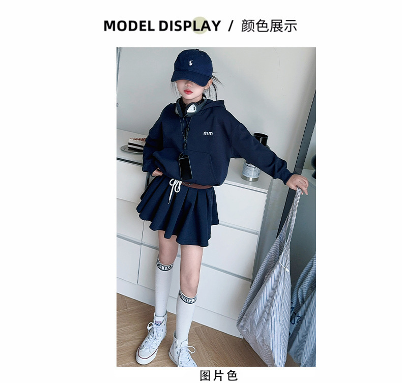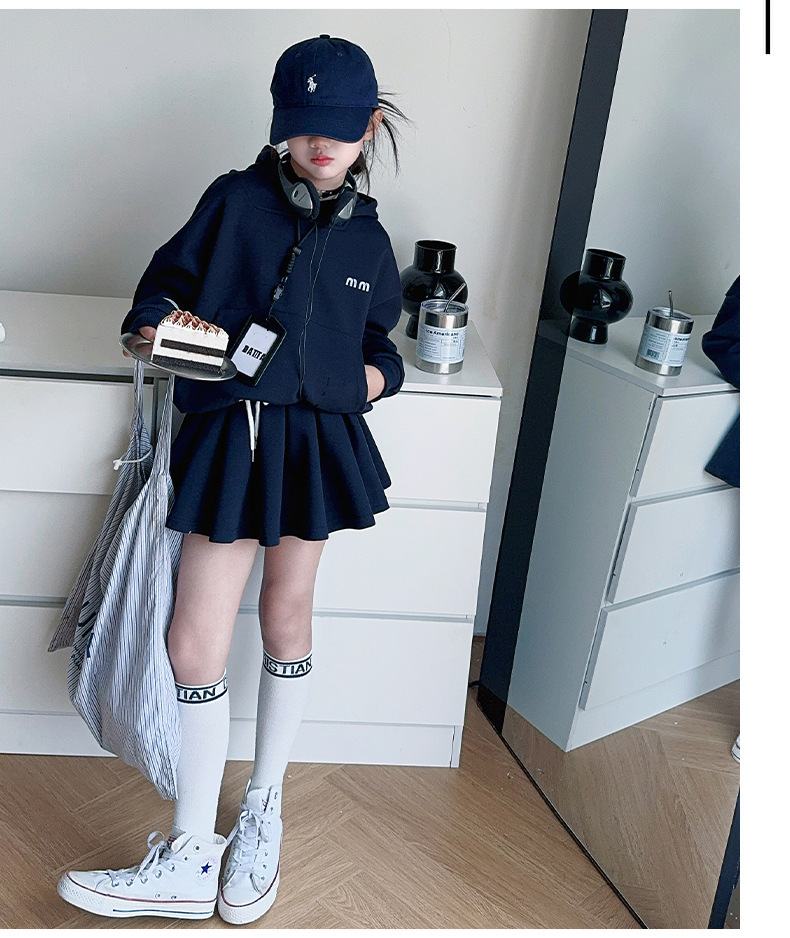 소녀의 봄과 가을 스웨트 셔츠 스커트 세트 2024 새로운 어린이 후드 탑 주름 치마 패션 가을 패션 대학 패션스토어 가기