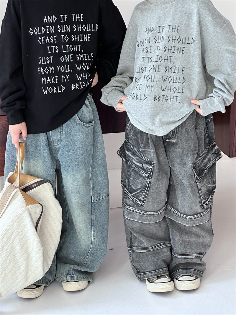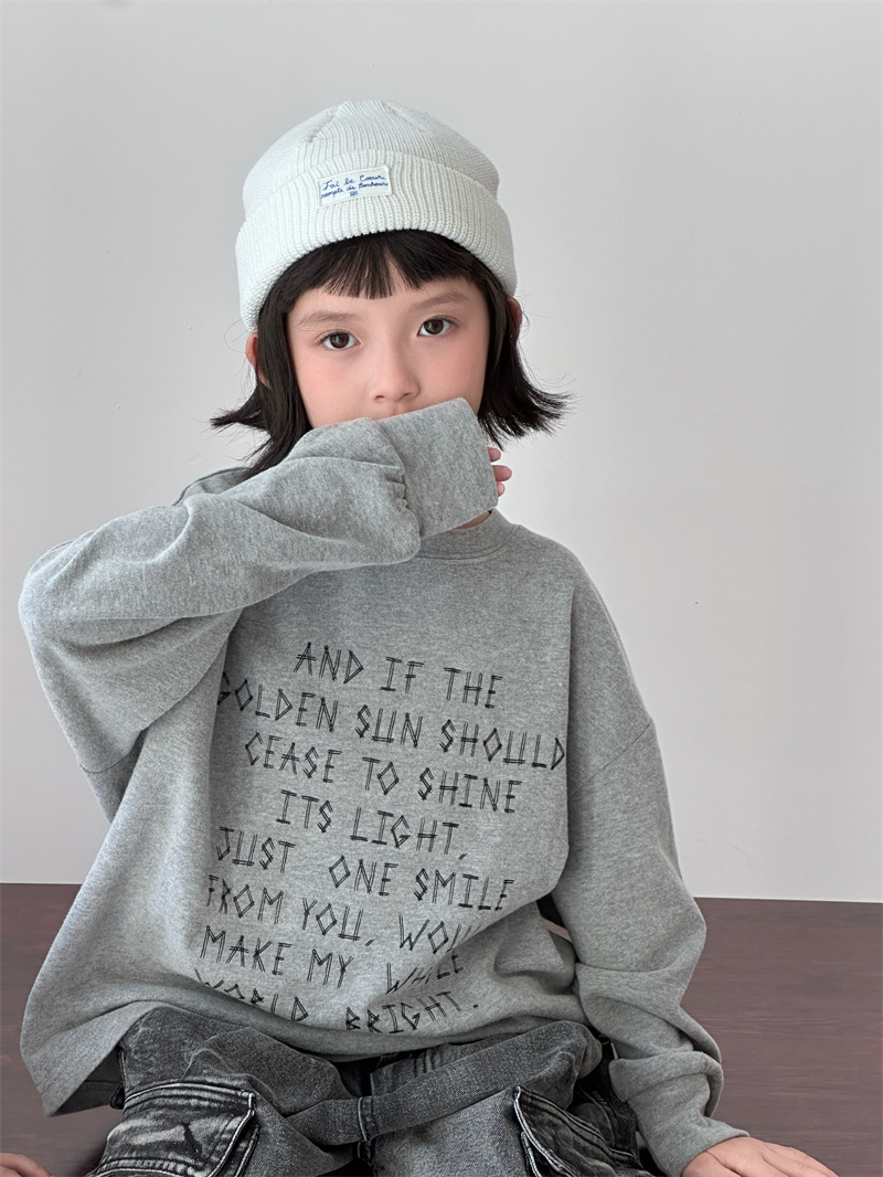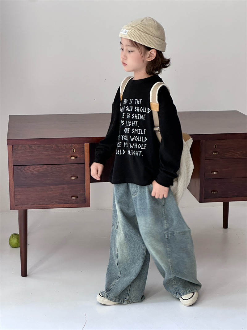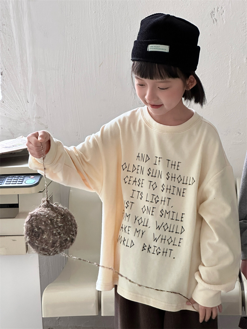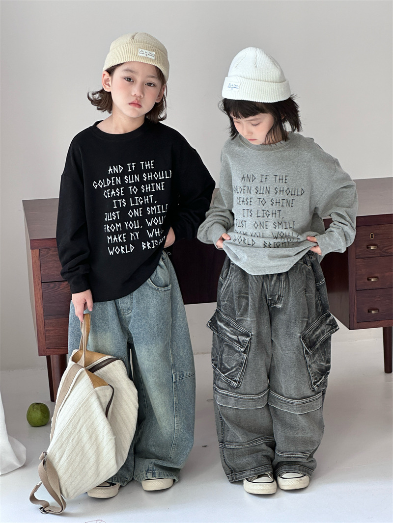2025 새로운 가을 한국 스타일 소년과 소녀를위한 어린이 느슨한 편지 티셔츠 패션 다목적 캐주얼 라운드 넥 긴 소매 유행