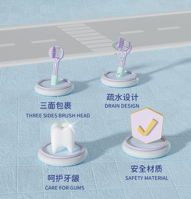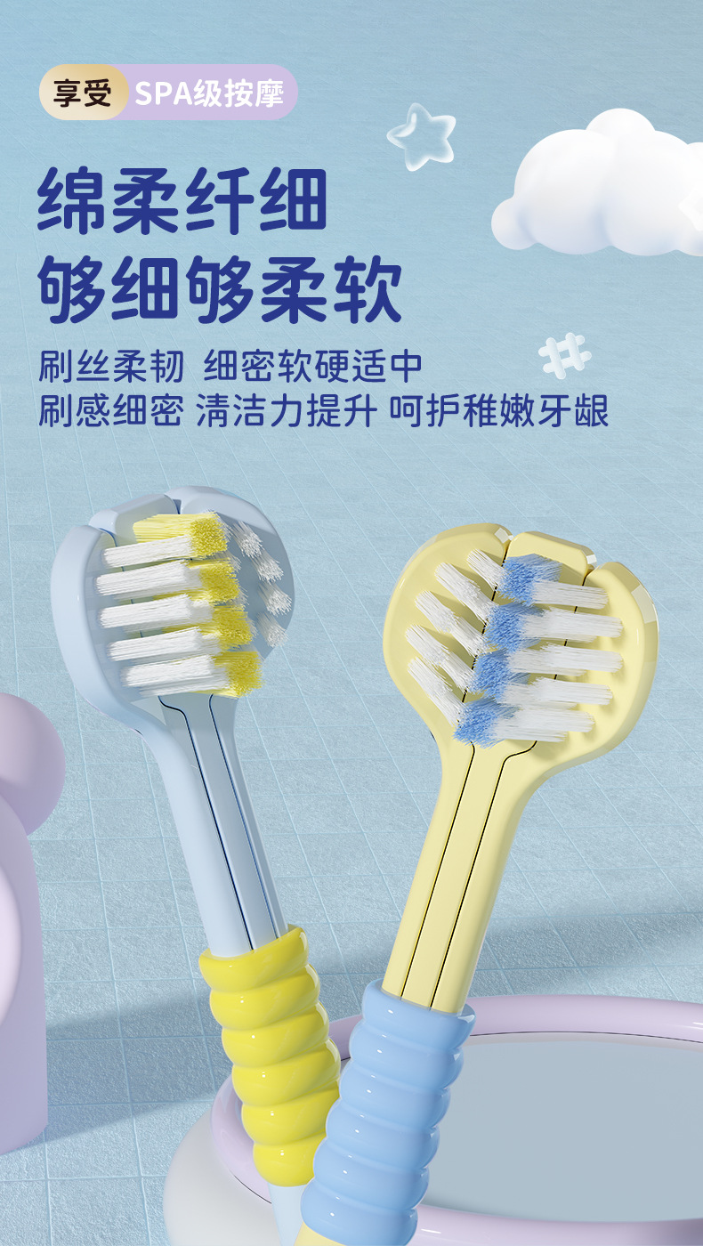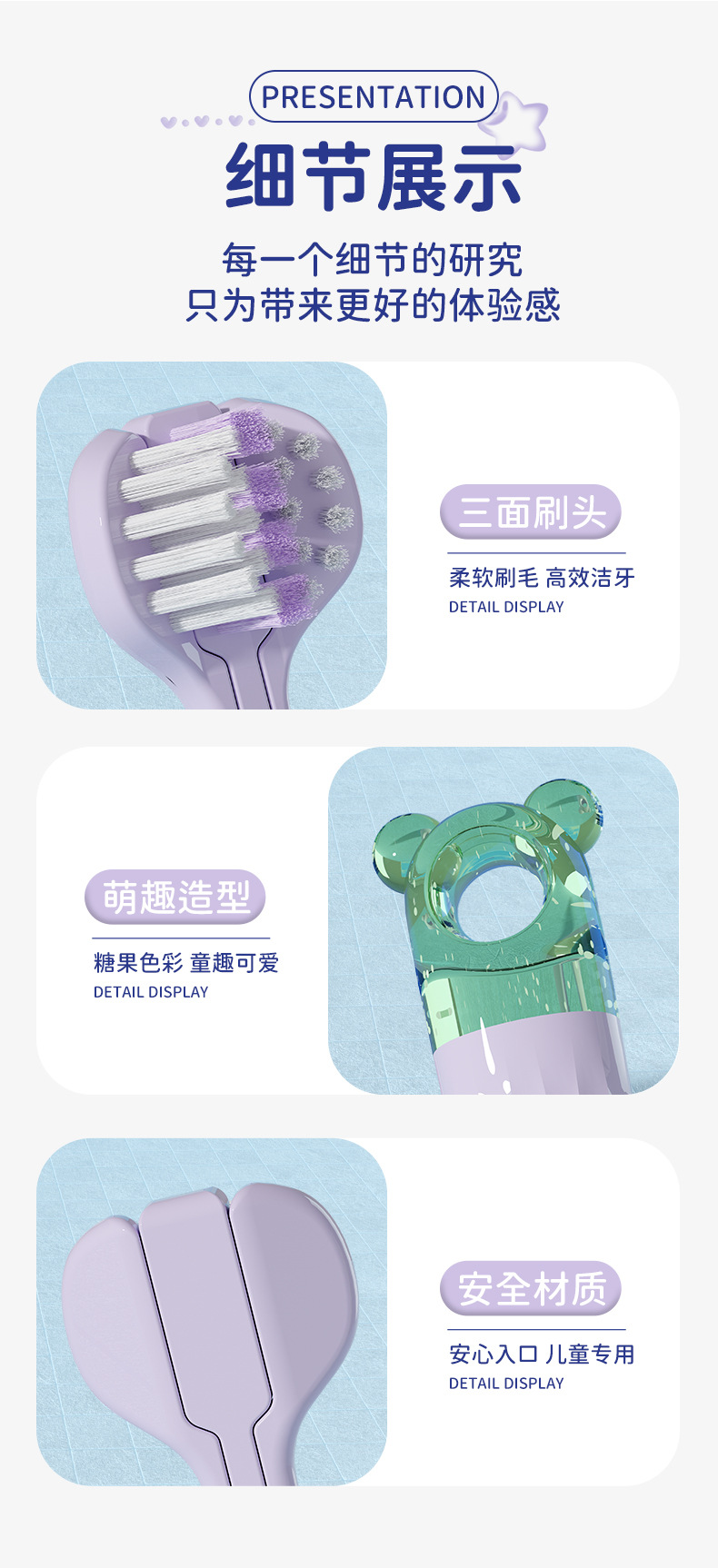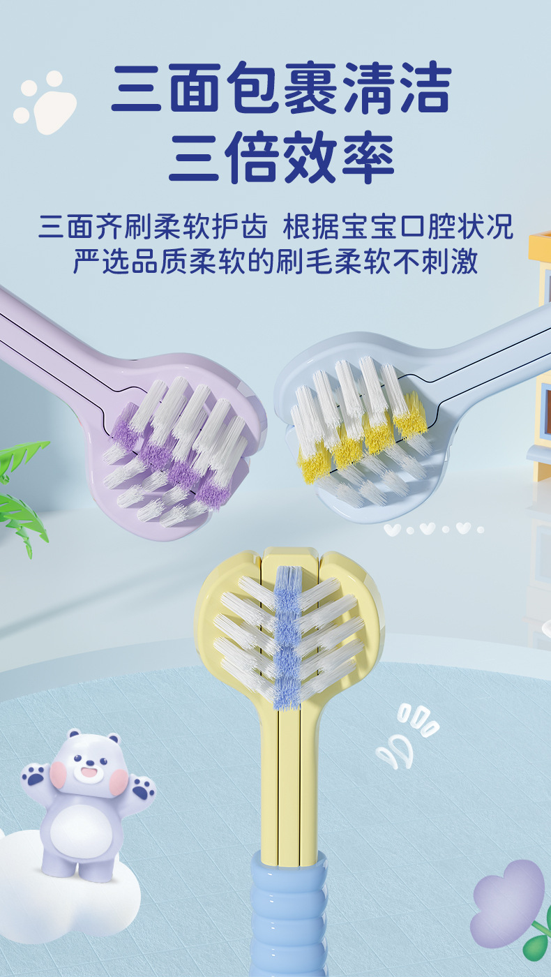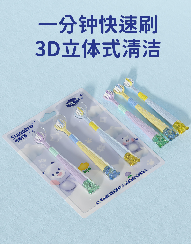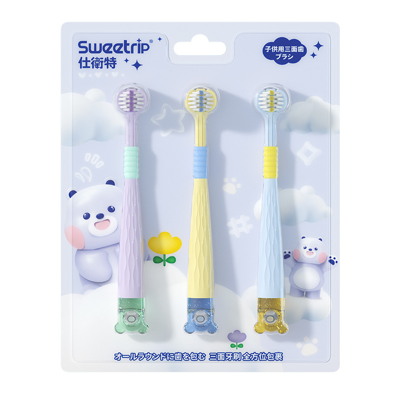 [TikTok Explosions] Three-Pack Children's Soft Hair Three-sided Toothbrush for 3-12 Years Old Cartoon Bear Three-headed Toothbrush스토어 가기