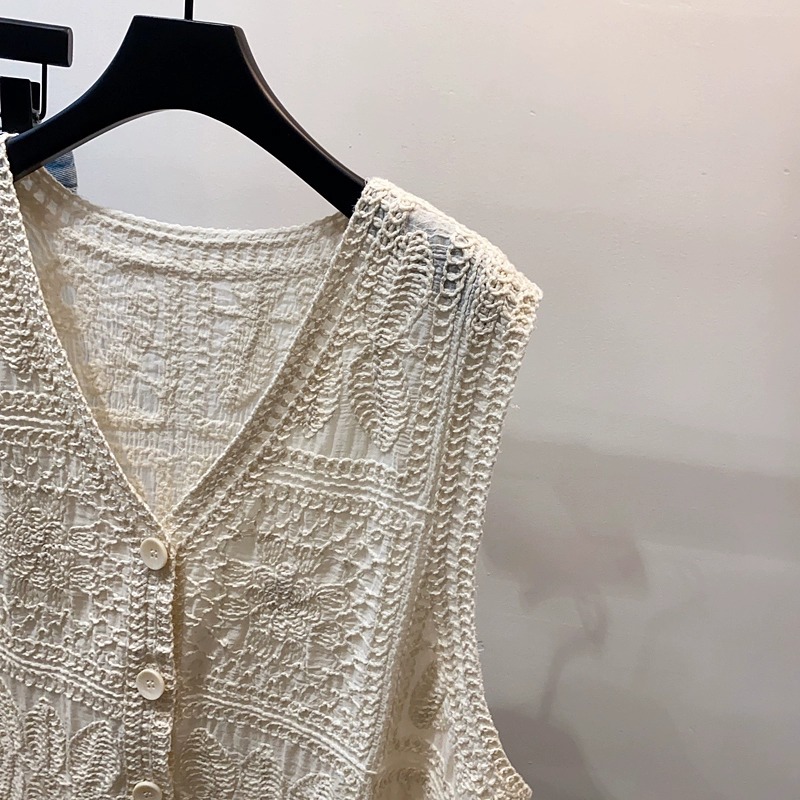 한국 문학과 예술 슬림 자수 레이스 조끼 여성의 새로운 신선한 달콤한 나이 감소 기질 재킷 081G스토어 가기
