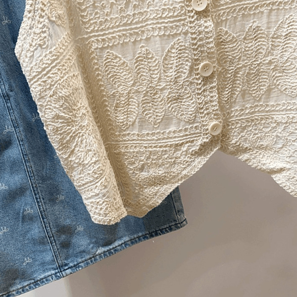 한국 문학과 예술 슬림 자수 레이스 조끼 여성의 새로운 신선한 달콤한 나이 감소 기질 재킷 081G