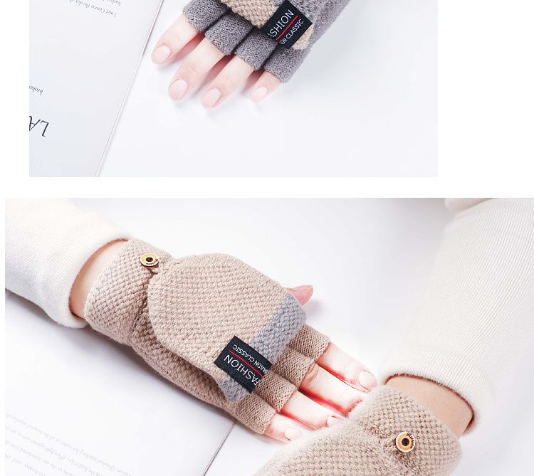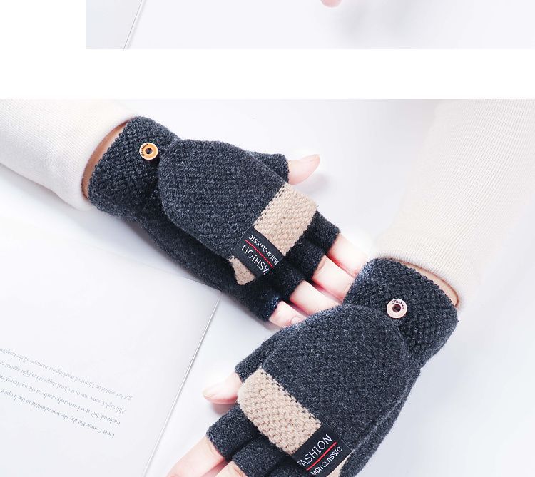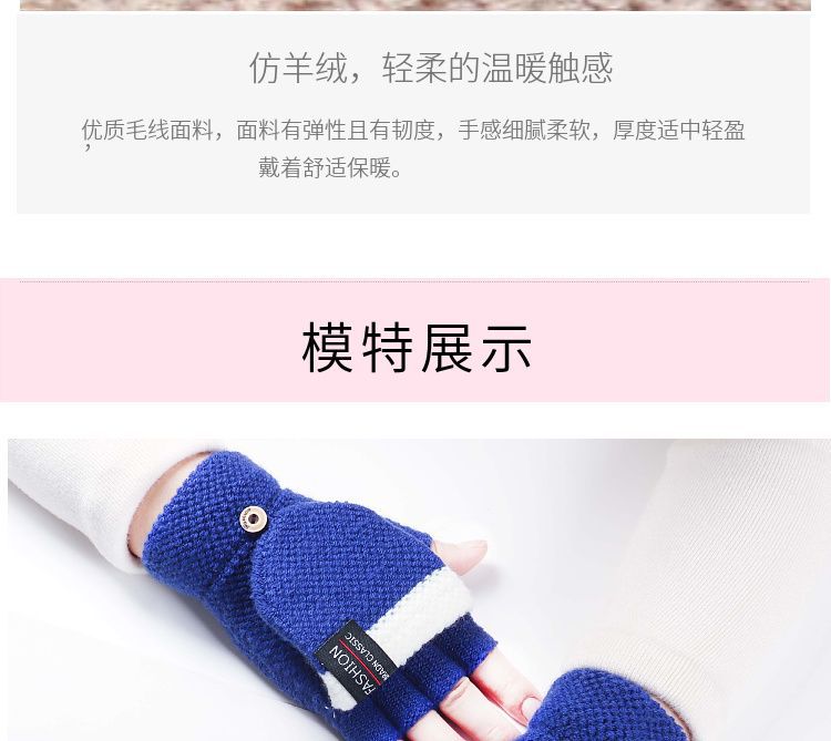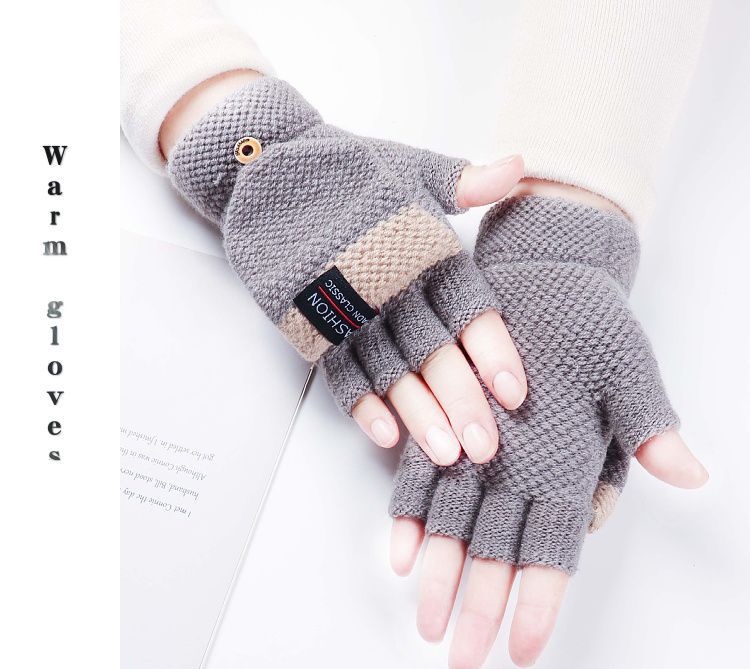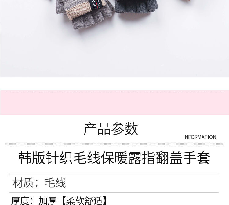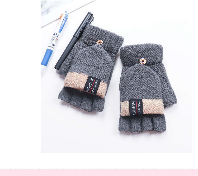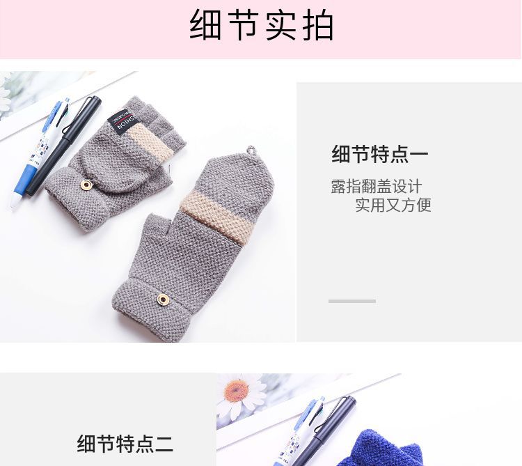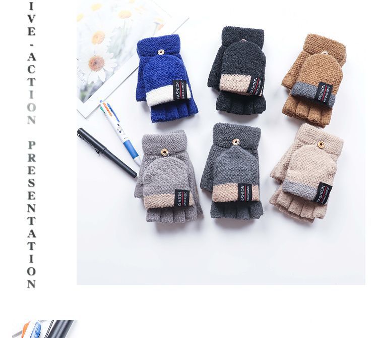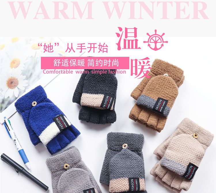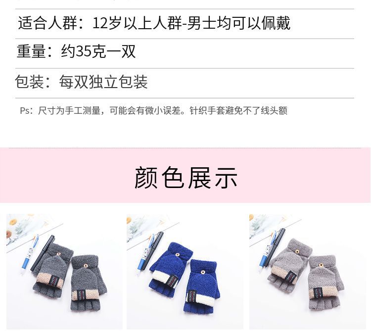 반 손가락 장갑 남자의 겨울 겨울 학생 두꺼운 따뜻한 승마 니트 울 플립 핑거 한국 스타일스토어 가기