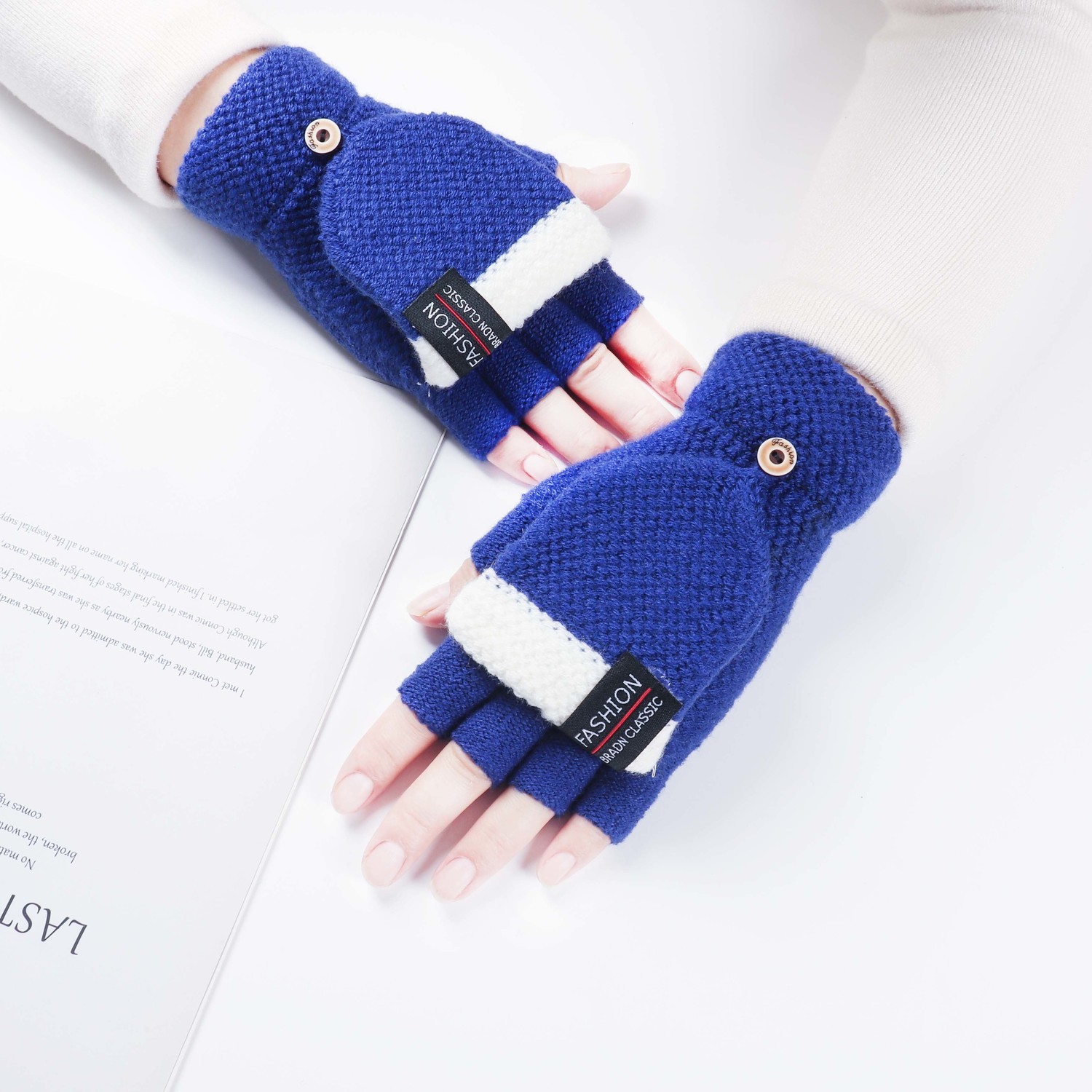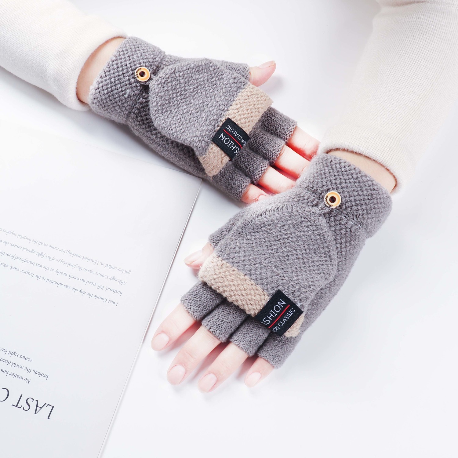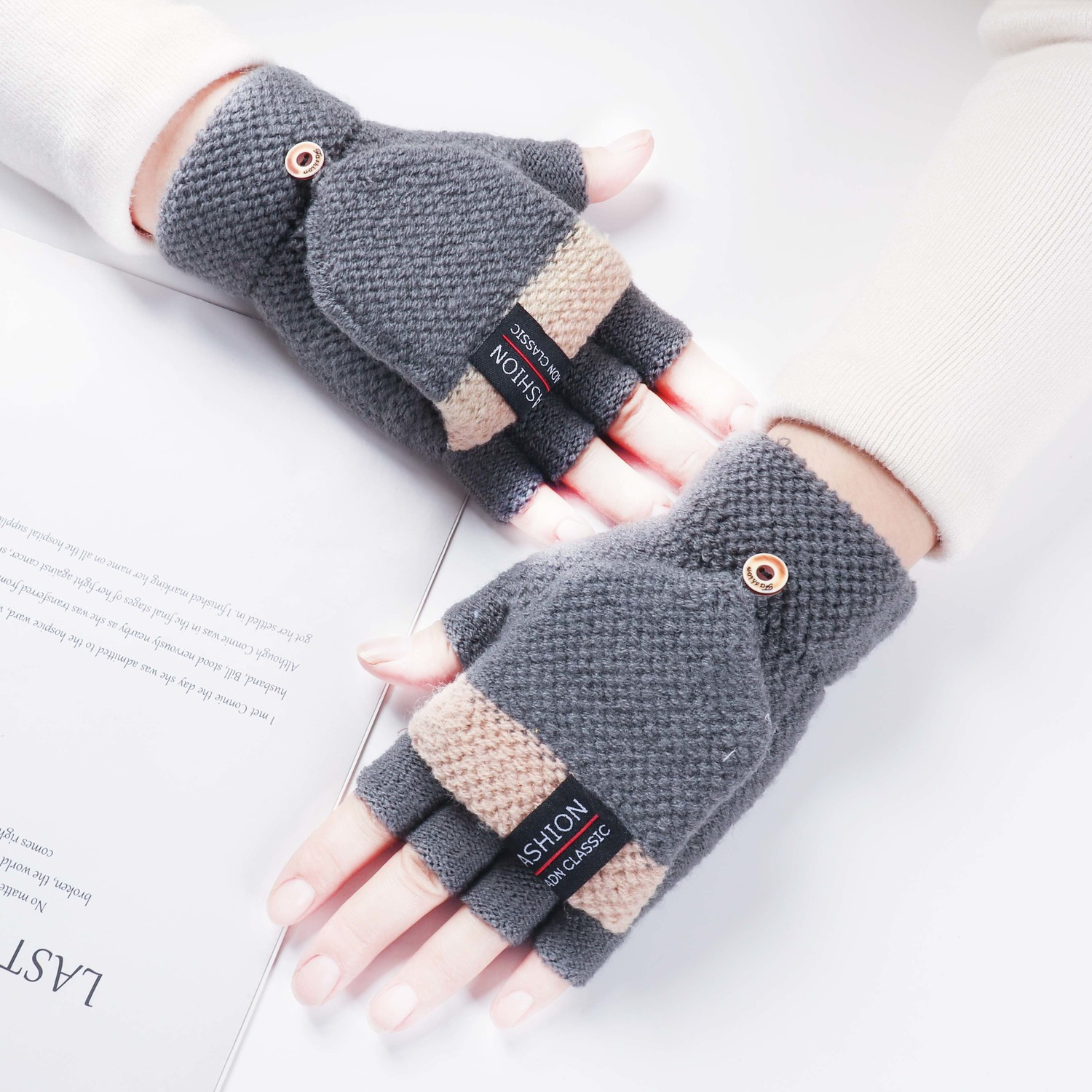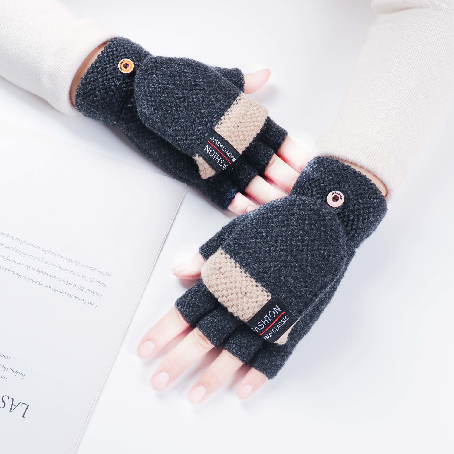 반 손가락 장갑 남자의 겨울 겨울 학생 두꺼운 따뜻한 승마 니트 울 플립 핑거 한국 스타일