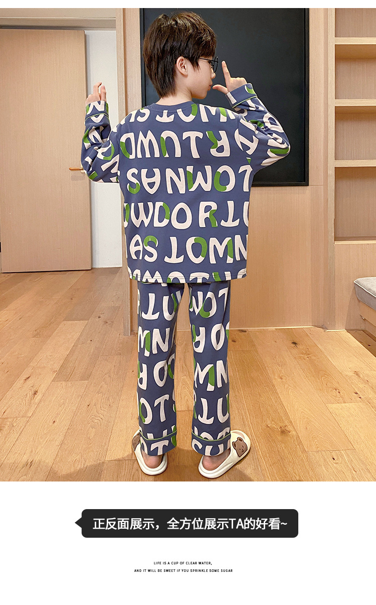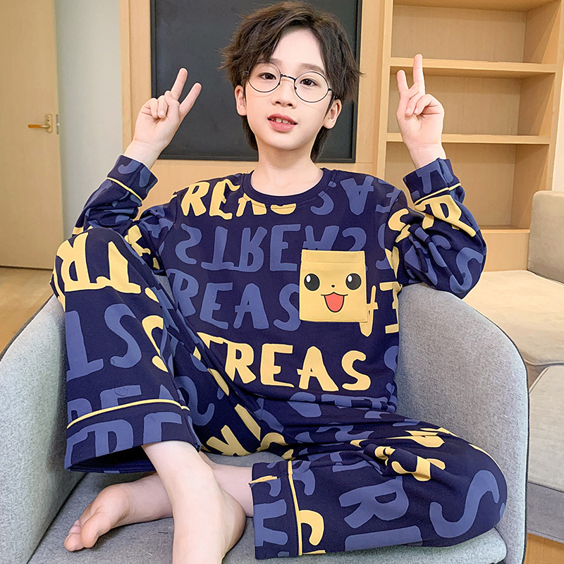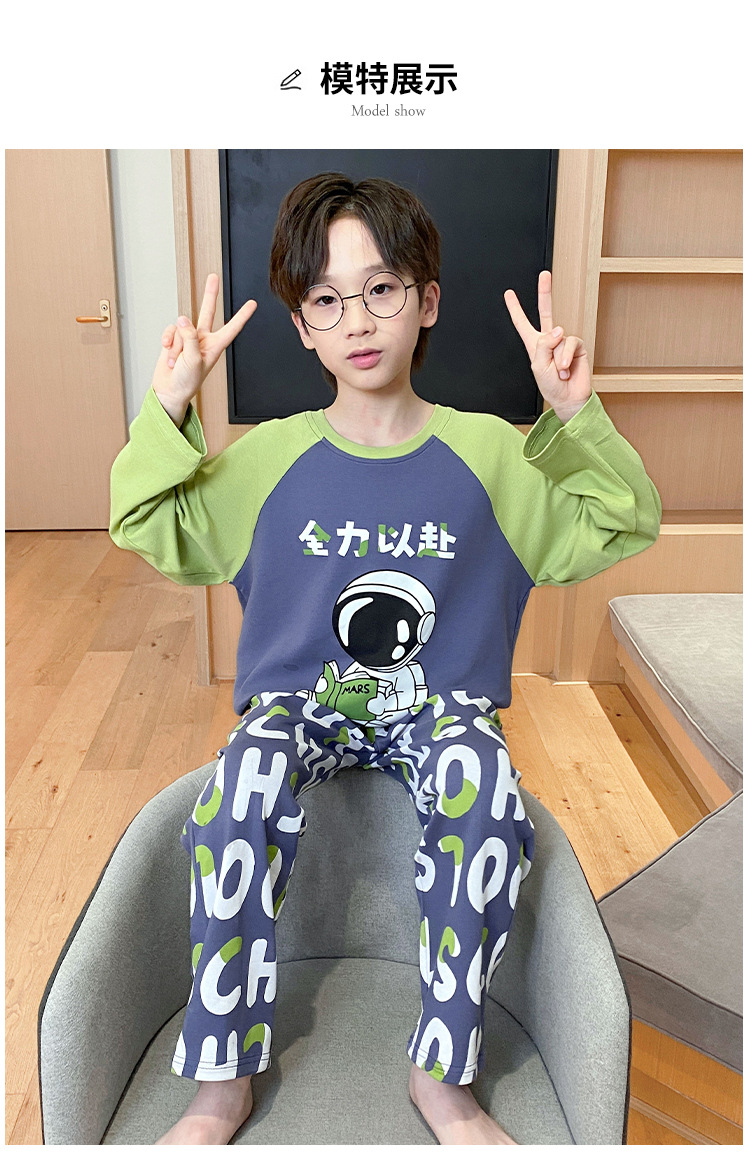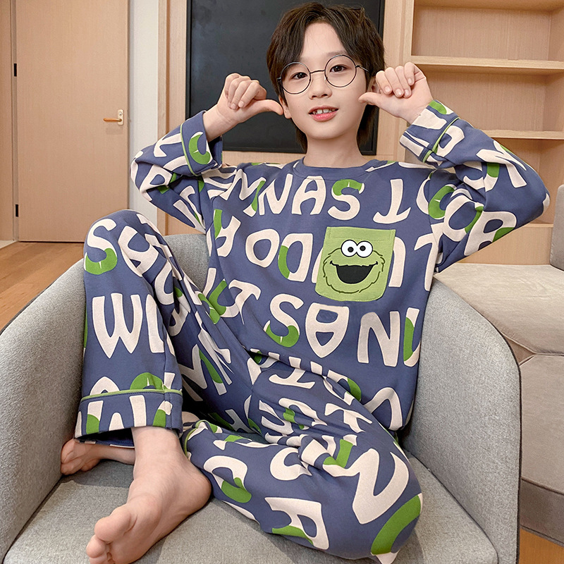 어린이 잠옷 가을 소년 긴 소매 얇은 2024 새로운 소년 중 큰 어린이 십대 봄과 가을 가정 옷스토어 가기