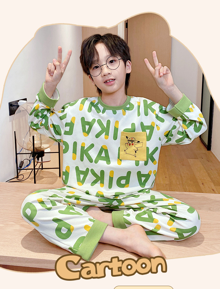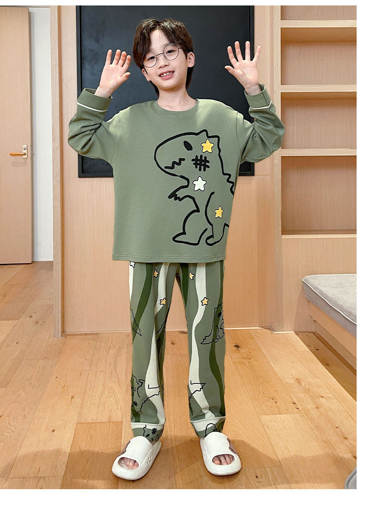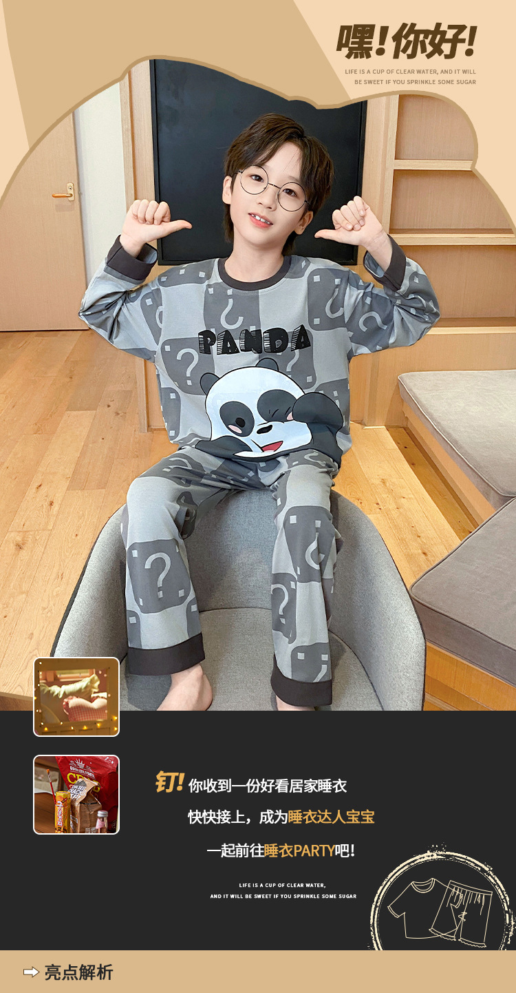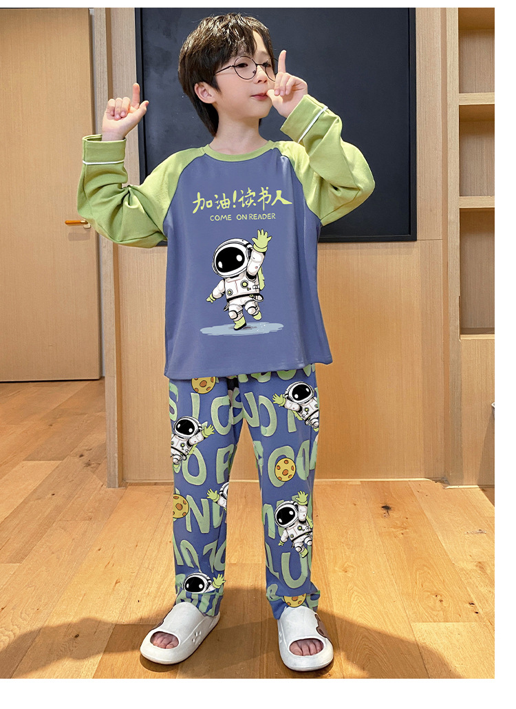 어린이 잠옷 가을 소년 긴 소매 얇은 2024 새로운 소년 중 큰 어린이 십대 봄과 가을 가정 옷스토어 가기