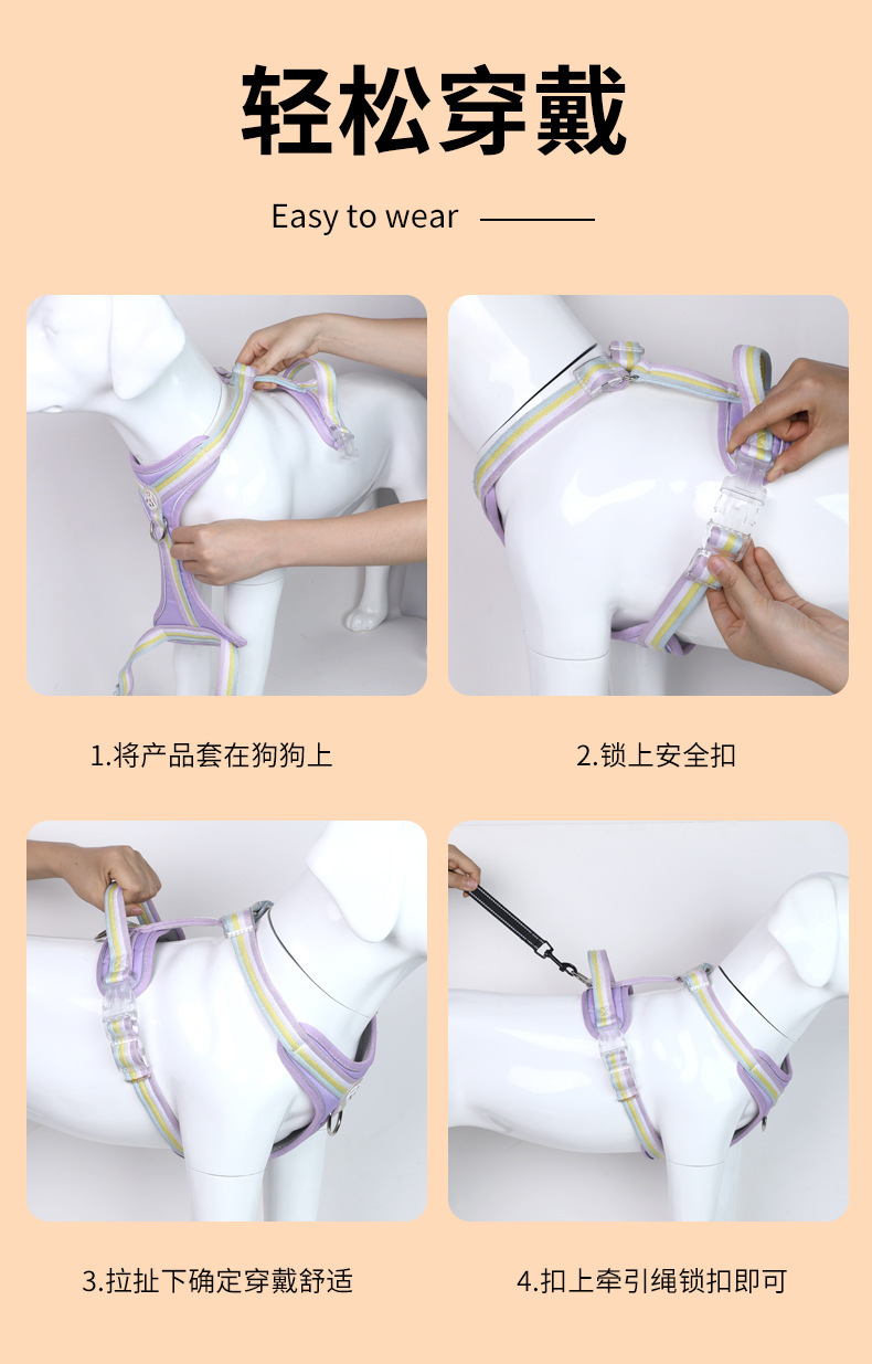 국경을 넘는 신형 애완동물 하네스, 야외용 목줄, 강아지 산책용 방폭 조끼형 세트, 강아지 목줄, 도매 판매스토어 가기