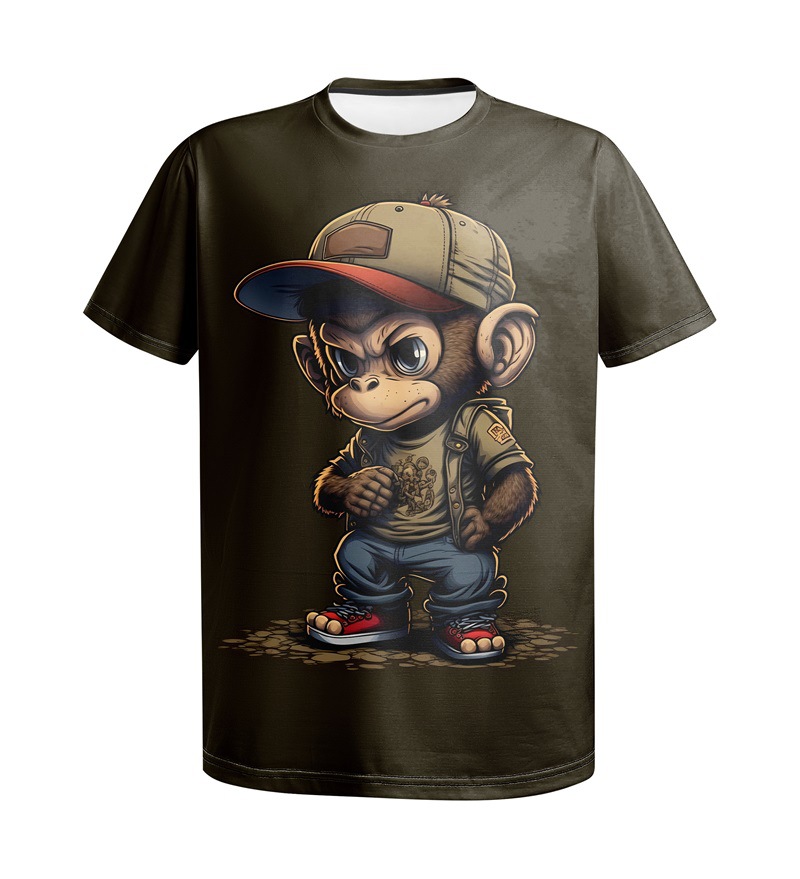 2024 만화 원숭이 패션 인쇄 트렌드 새로운 미국 스타일 국경 티셔츠 남성 거리 스타일 티셔츠스토어 가기