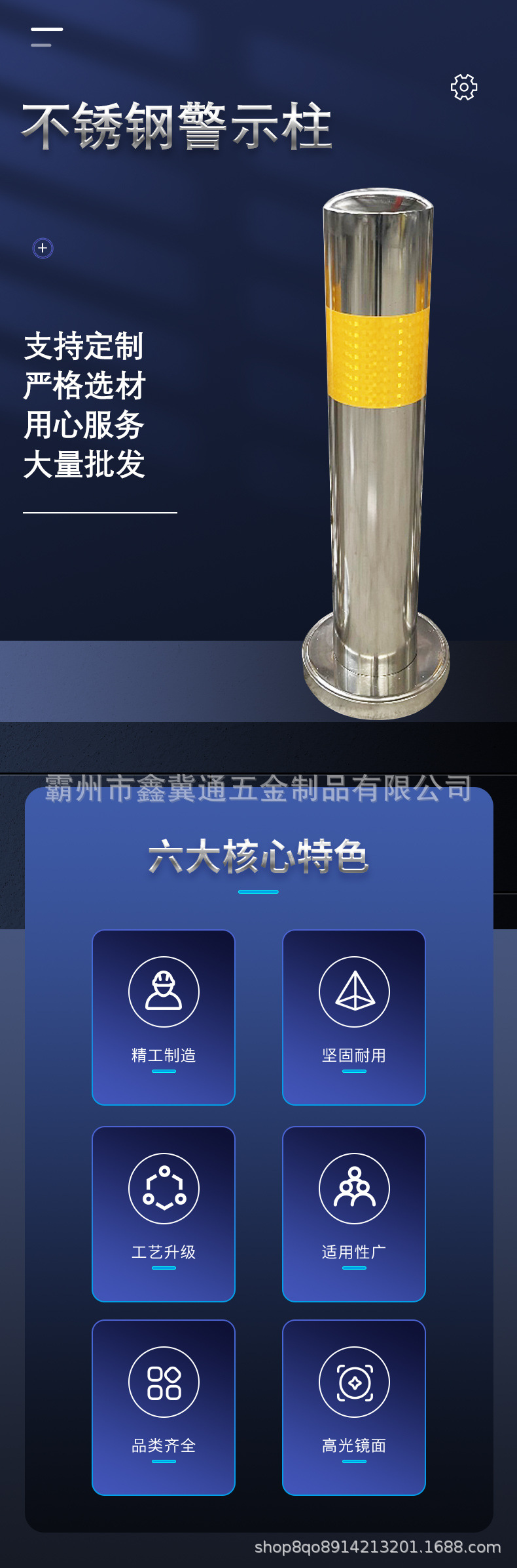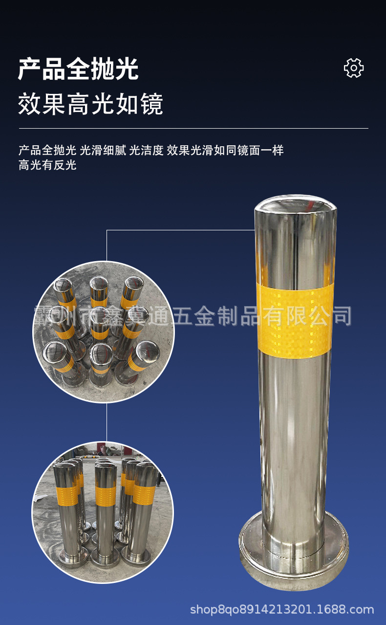 맞춤형 304 스테인레스 스틸 사전 매립형 이동식 고정 경고 기둥 두꺼운 스테인레스 스틸 안전 반사 충돌 방지 기둥스토어 가기