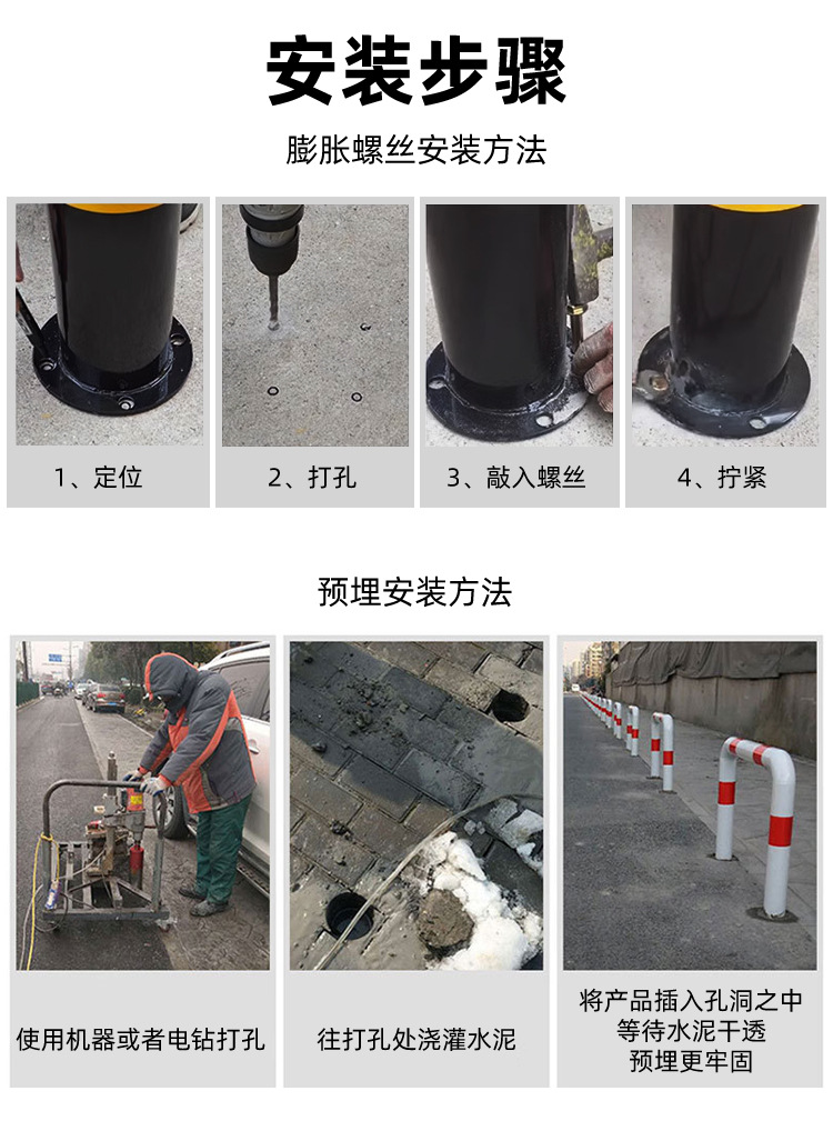 맞춤형 304 스테인레스 스틸 사전 매립형 이동식 고정 경고 기둥 두꺼운 스테인레스 스틸 안전 반사 충돌 방지 기둥