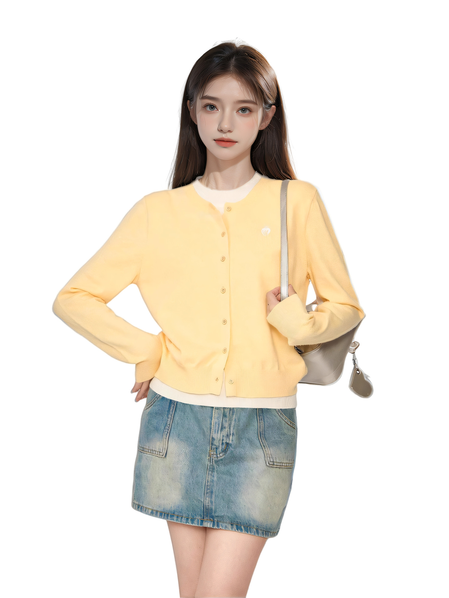 초가을 착용 거위 노란 가짜 투피스 니트 스웨터 카디건 여성 초가을 새 짧은 스웨터 코트 탑스토어 가기