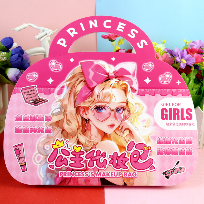어린이 수제 DIY 원피스 업 스티커 어린 소녀의 생일 선물 메이크업 장난감 소재 가방 공주 휴대용 메이크업 가방