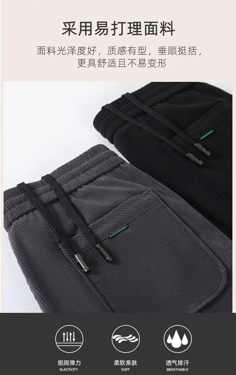 2024 년 가을 새로운 스트레치 탄성 허리 스포츠 바지 스트레이트 루즈 남자 올 매치 코듀로이 캐주얼 바지