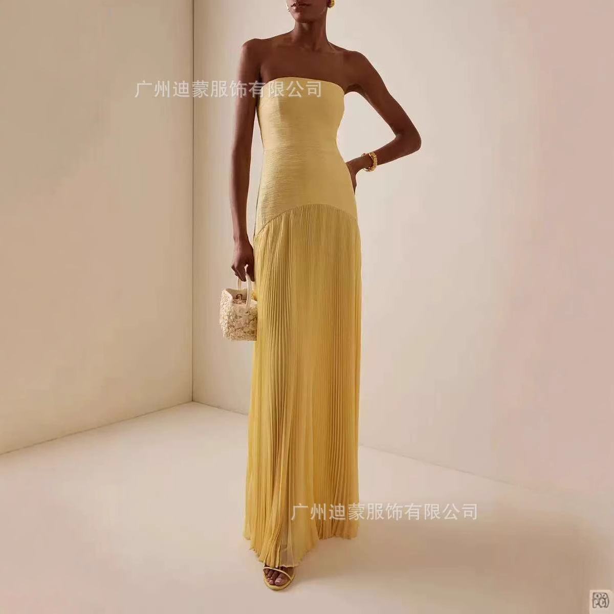 2024 러시아 유럽과 미국 여성 국경 아마존 폭발 패션 캐주얼 핏 스트립 천 튜브 주름 원피스스토어 가기