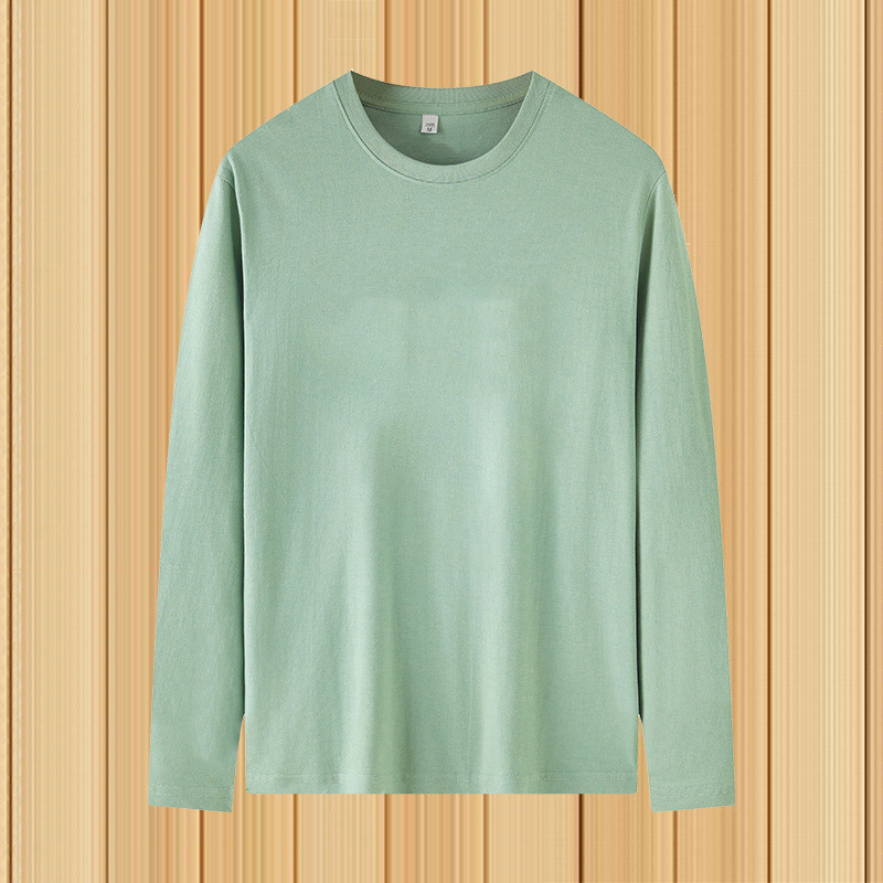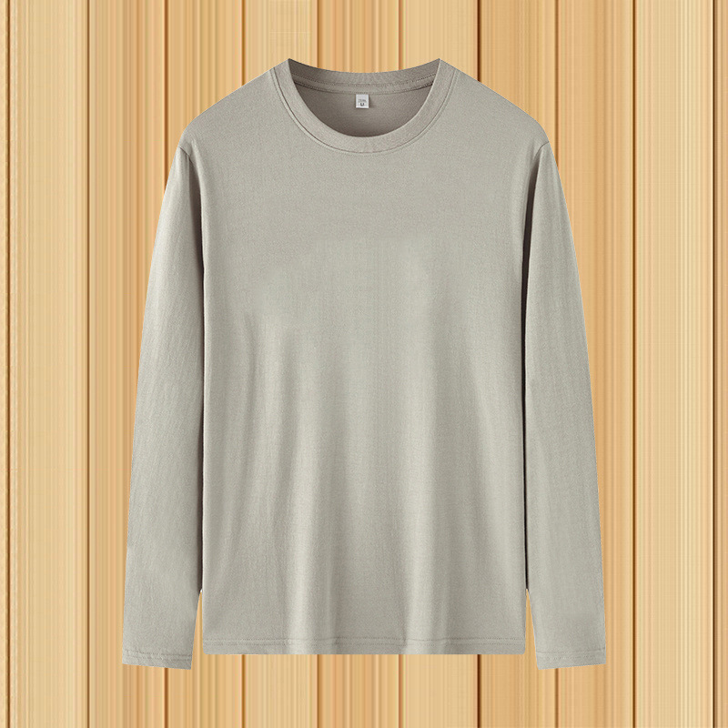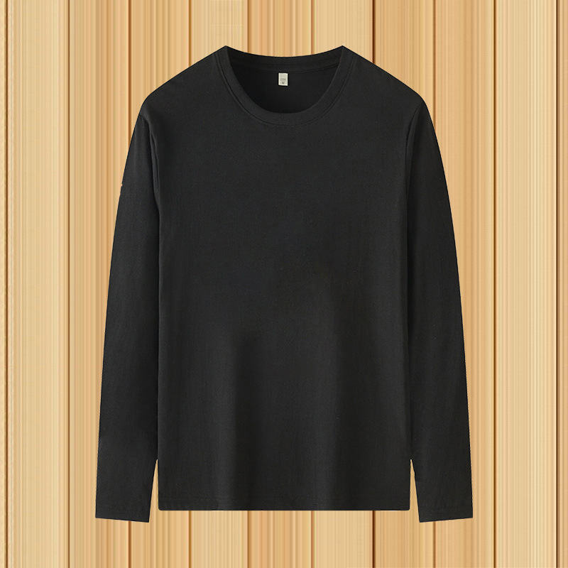 180g 우유 실크 남성 긴팔 티셔츠 가을과 겨울 얇은 느슨한 단색베이스 셔츠 플러스 사이즈 둥근 목 가을 의류스토어 가기
