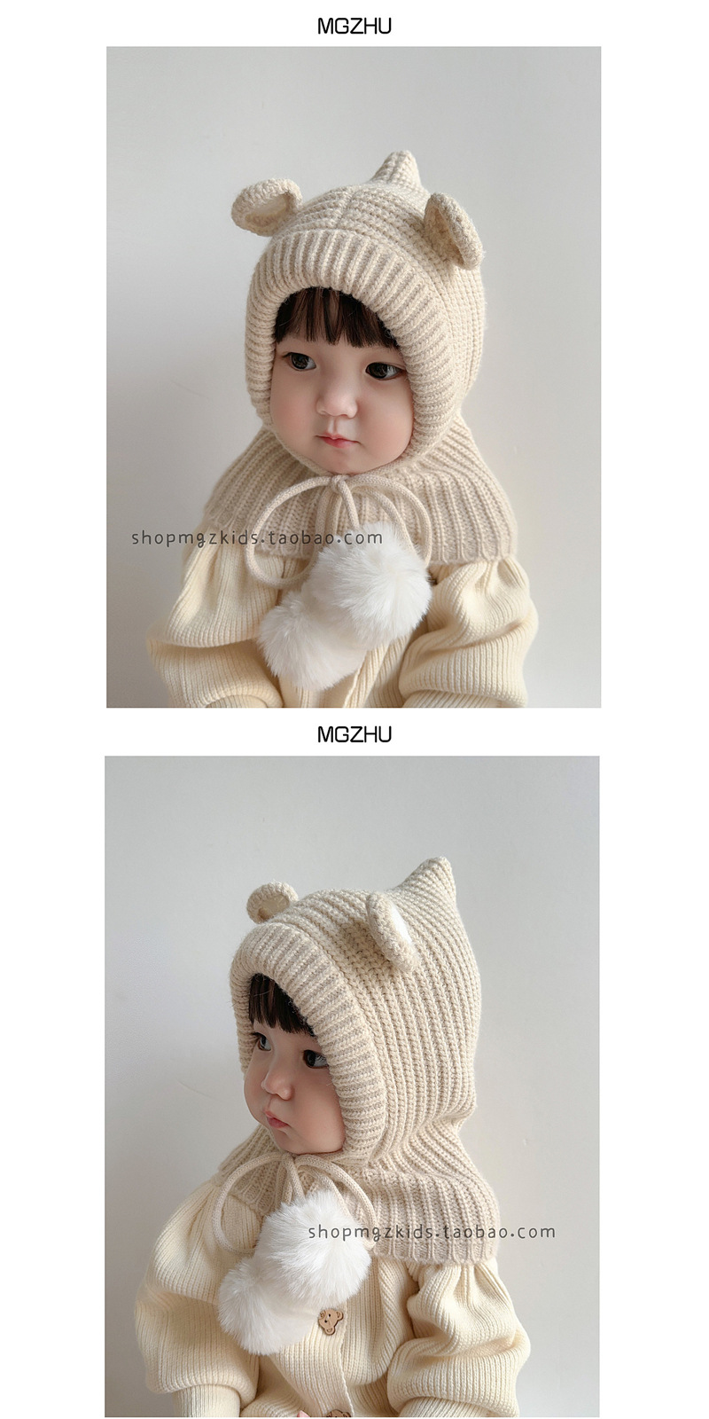 아기 모자 스카프 세트 가을과 겨울 중간 두꺼운 니트 귀여운 슈퍼 귀여운 겨울 아기 방풍 목도리 모자스토어 가기