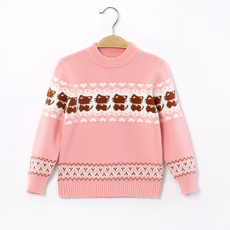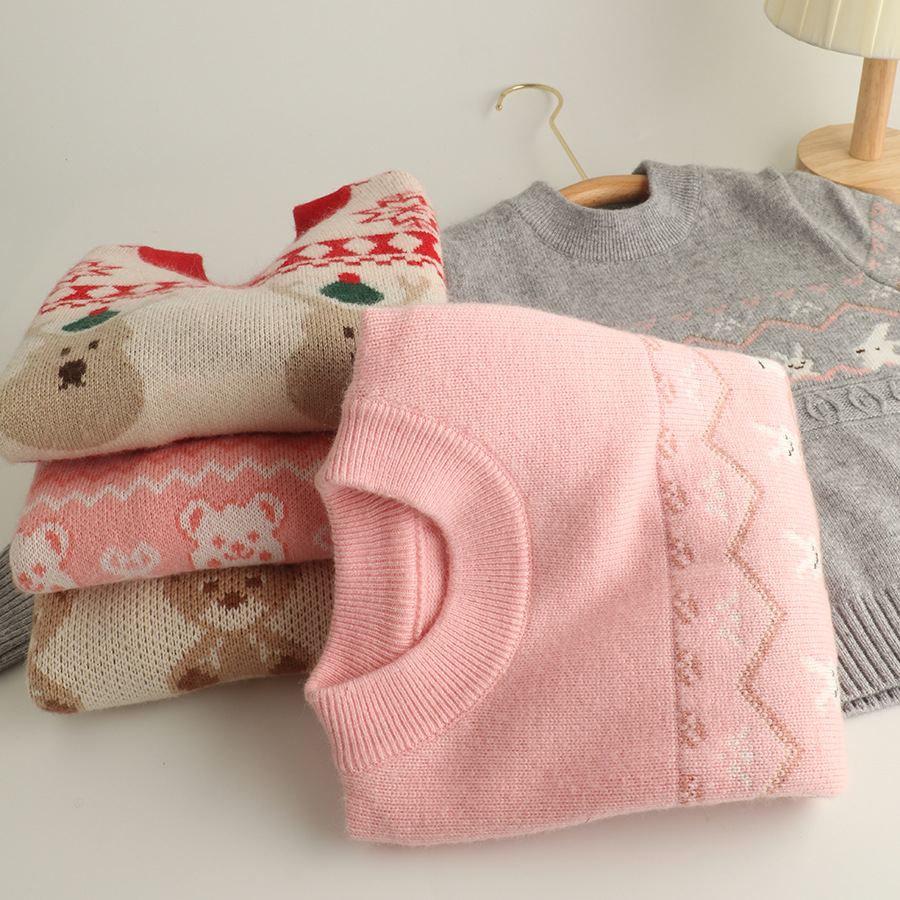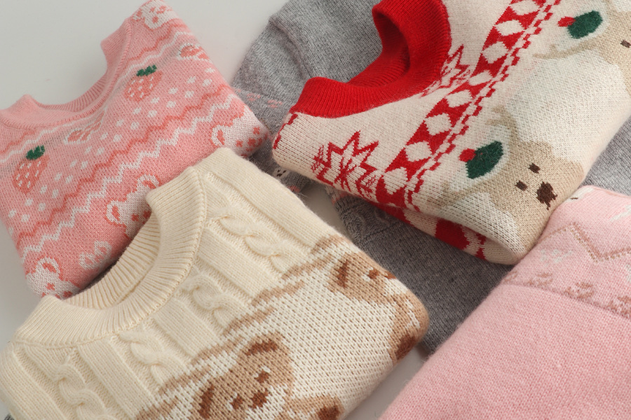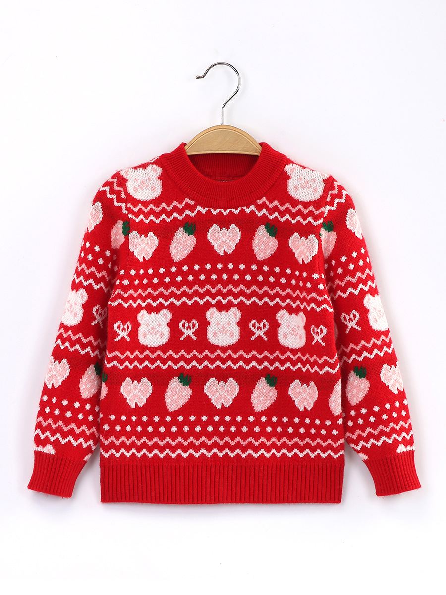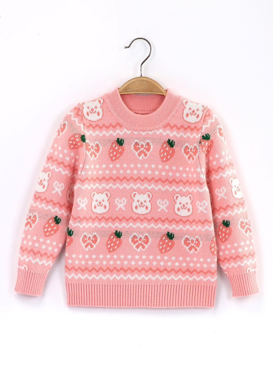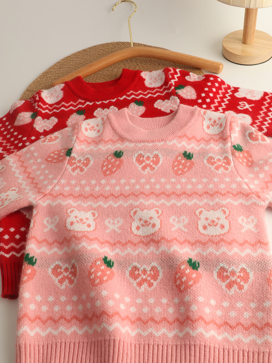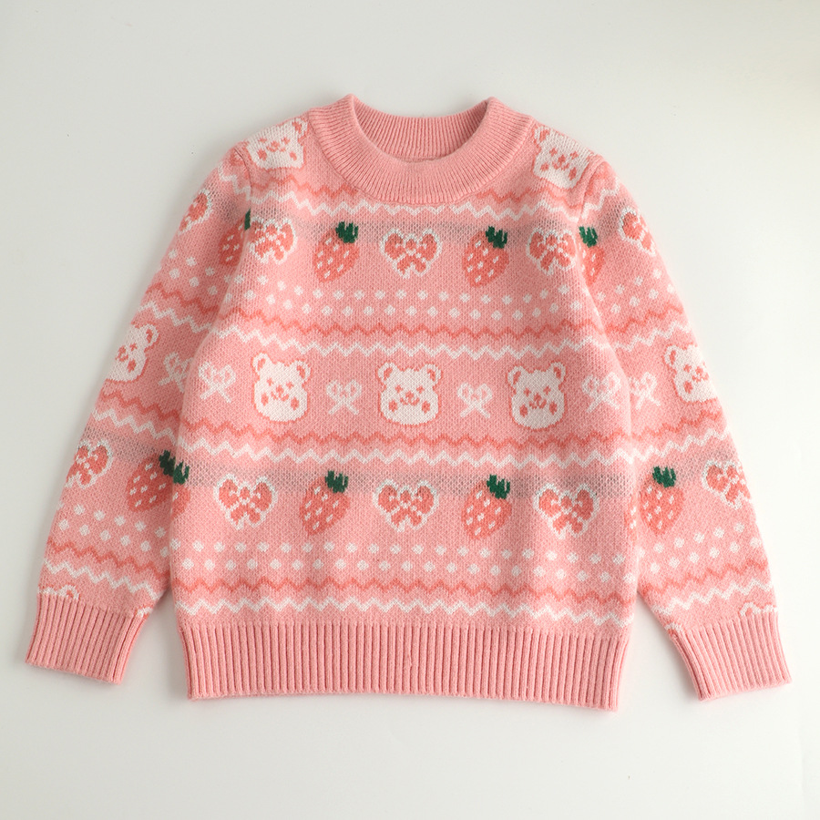 공장 45 소녀 캐시미어 스웨터 두꺼운 만화 스웨터 가을과 겨울 자카드 딸기 베이비베이스 셔츠 크루 넥 새로운