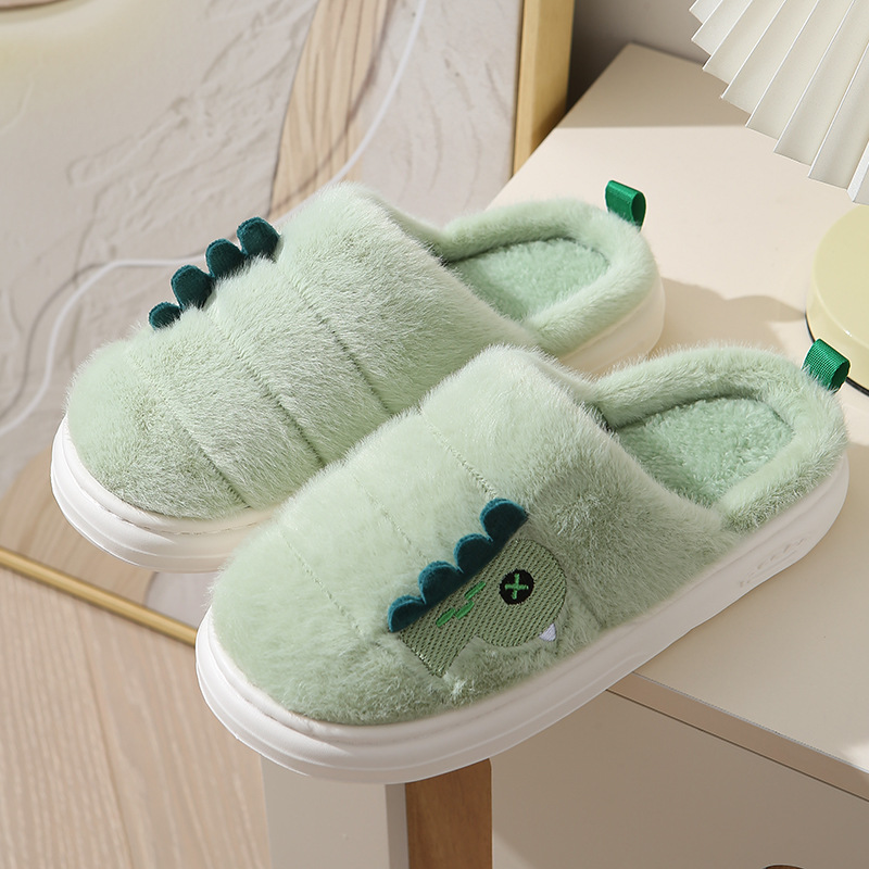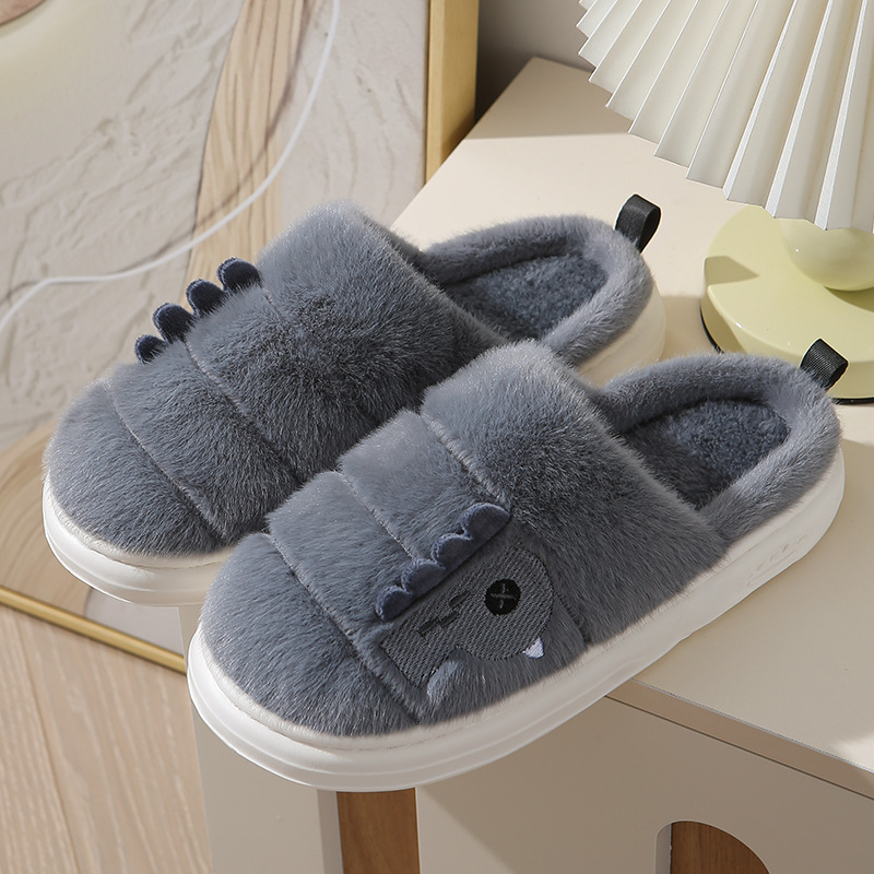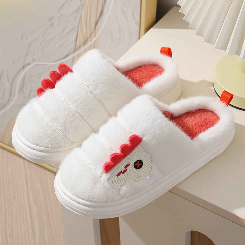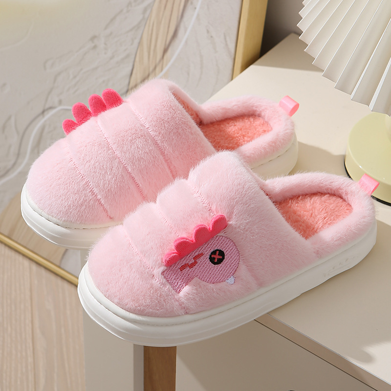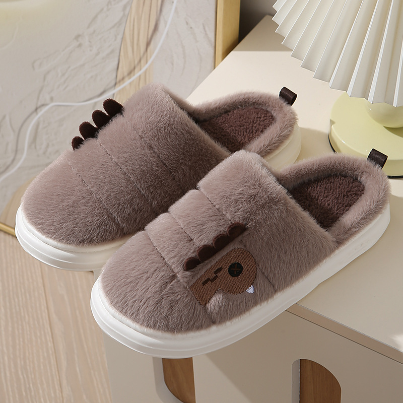 新款秋冬季加绒保暖居家防滑情侣可爱卡通毛毛EVA厚底棉拖鞋批发
