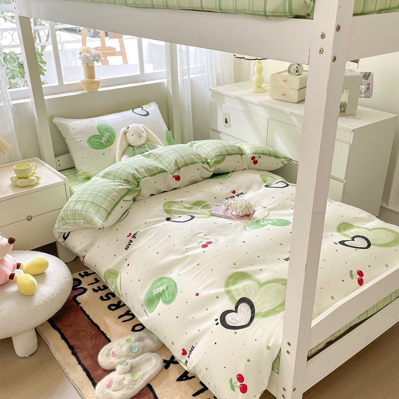 2024 새로운 인쇄 된 학생 기숙사 4 종 세트 학교 시즌 침대 시트 퀼트 커버 대학생 기숙사 직접 판매
