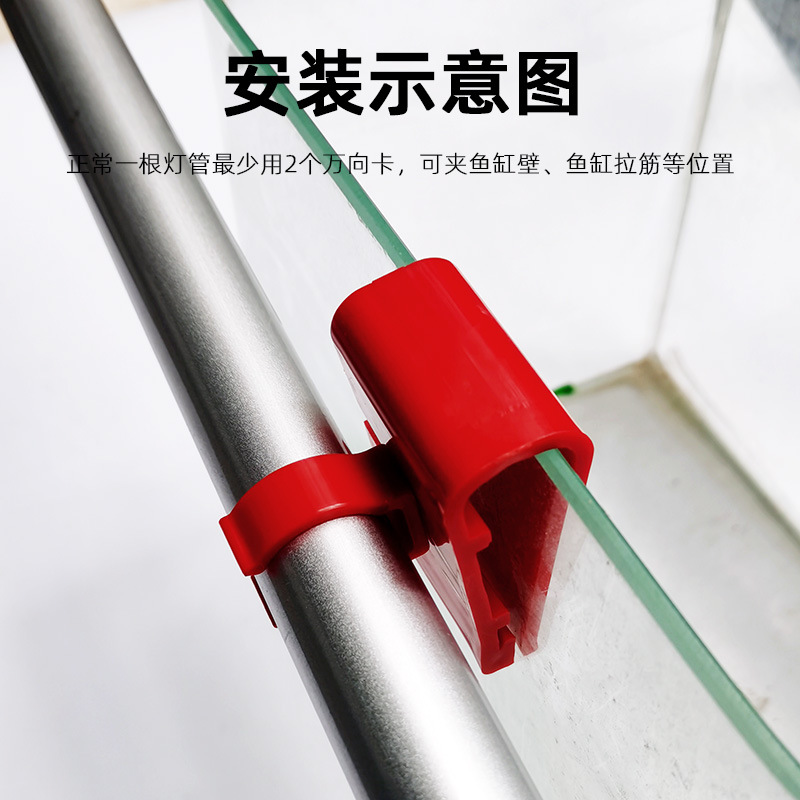 坚固耐用,韧性高,适合直接固定夹在鱼缸拉筋上支撑灯管或者水管,管卡可360度调整方向,简单实用。全塑料材质,不影响水质。管夹为卡扣设计,方便安装。请确定好灯管直径再下单!