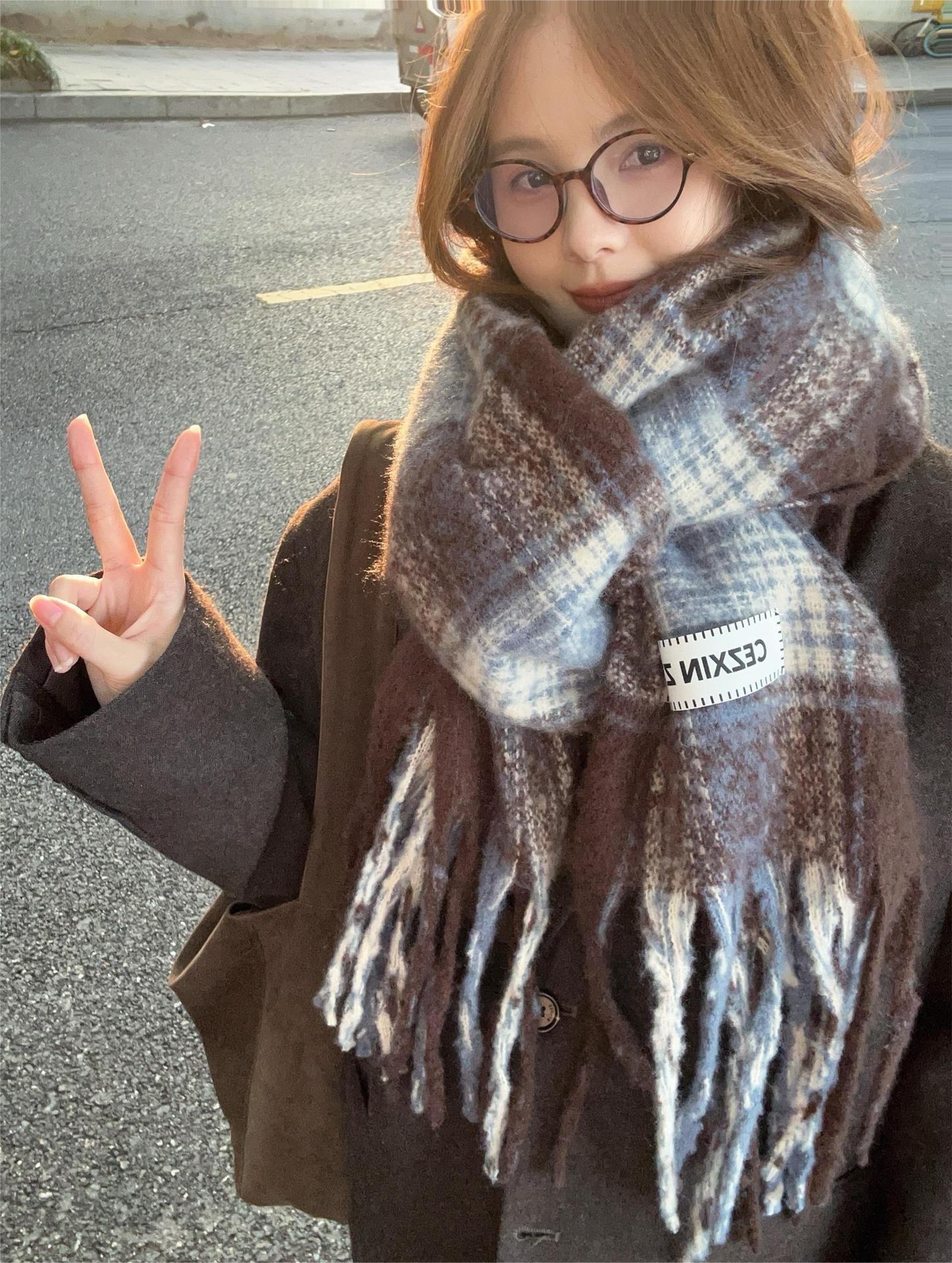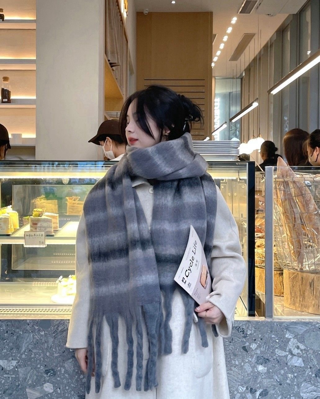 Tonglu 제조 업체 새로운 단색 안개 블루 스카프 여성의 겨울 푹신한 머리 패딩 학생 흰색 따뜻한 스카프스토어 가기