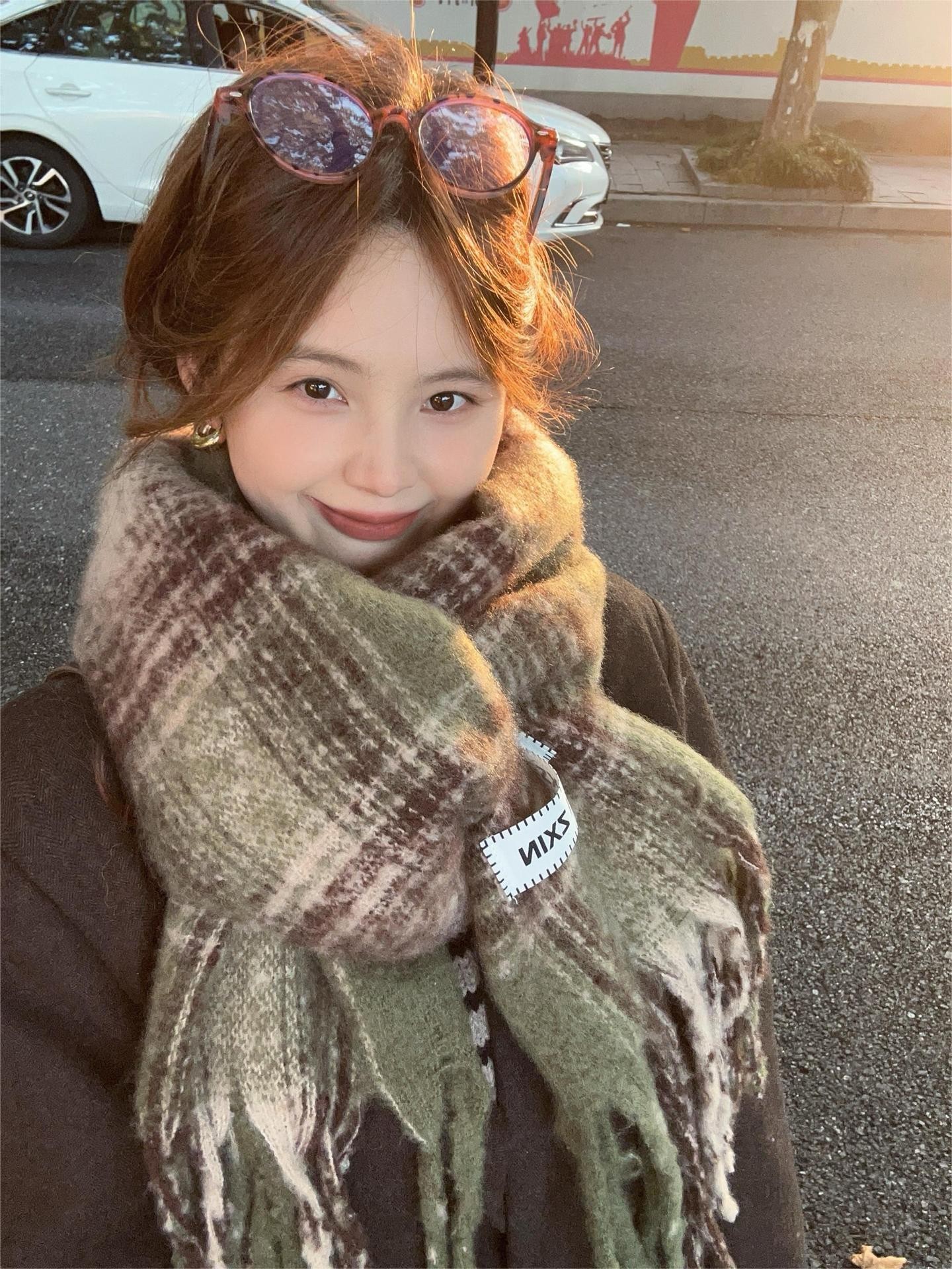 • 새로운 점선 마크 기모 스카프 모스 그린