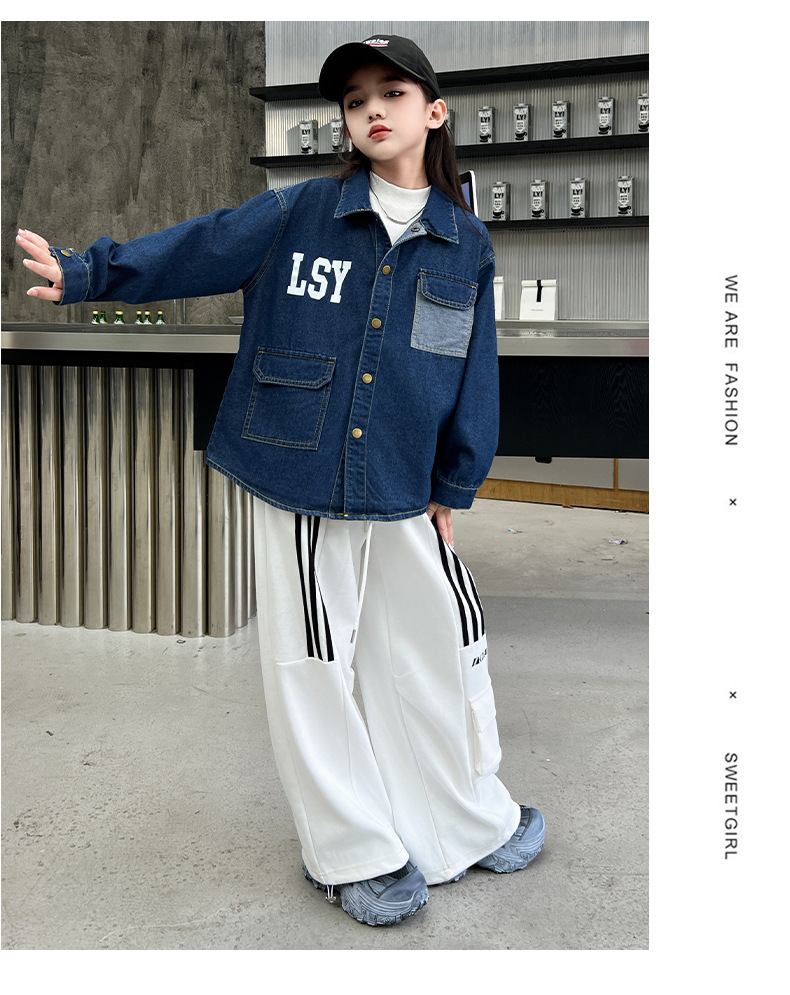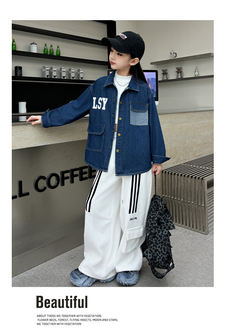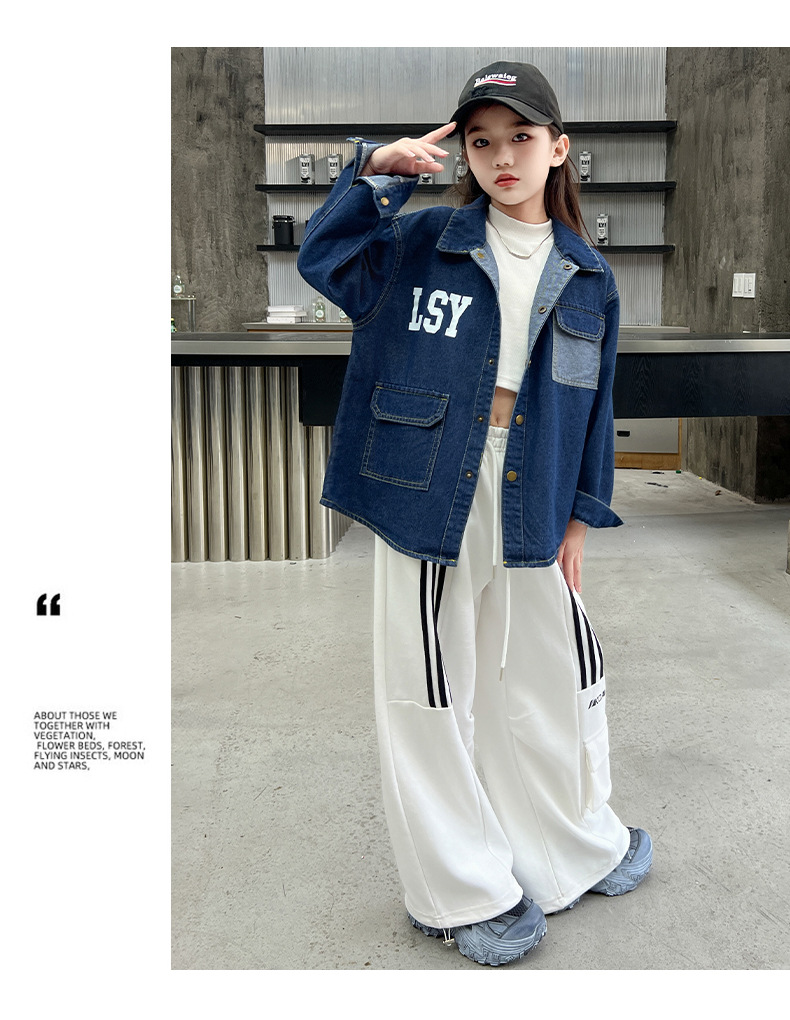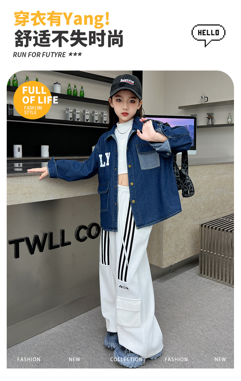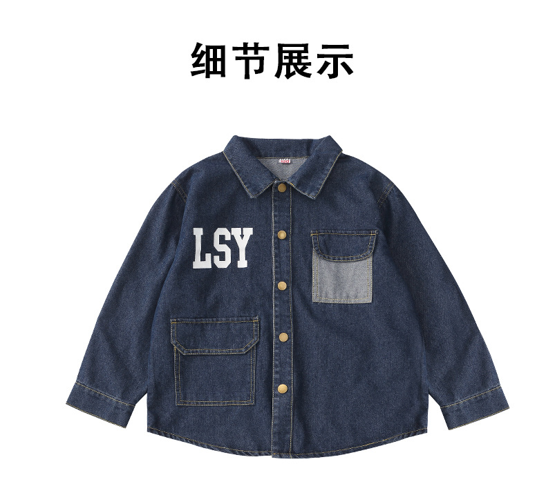 여자 편지 데님 셔츠 봄, 가을 2025 새로운 한국 스타일 서양식 패션 중대형 어린이 긴팔 재킷 탑스토어 가기