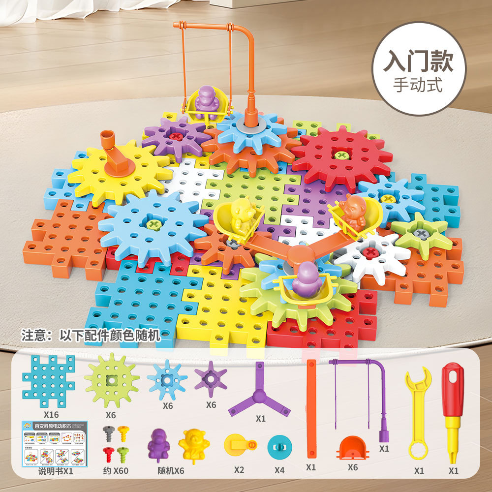 어린이 다양한 전기 건물 블록 기어 로타리 조립 퍼즐 대형 입자 3 ~ 6 세 소년 소녀를위한 조기 교육 장난감