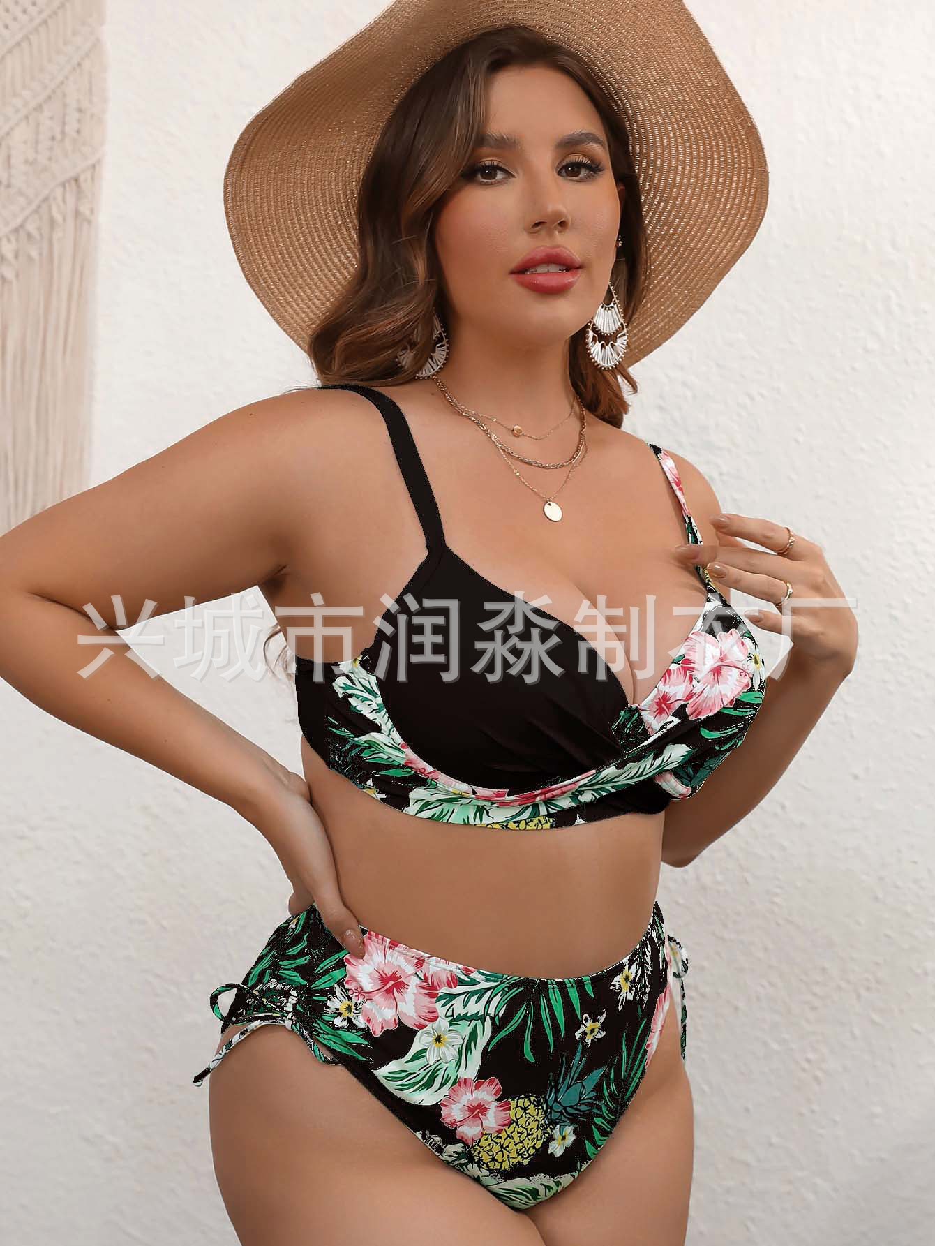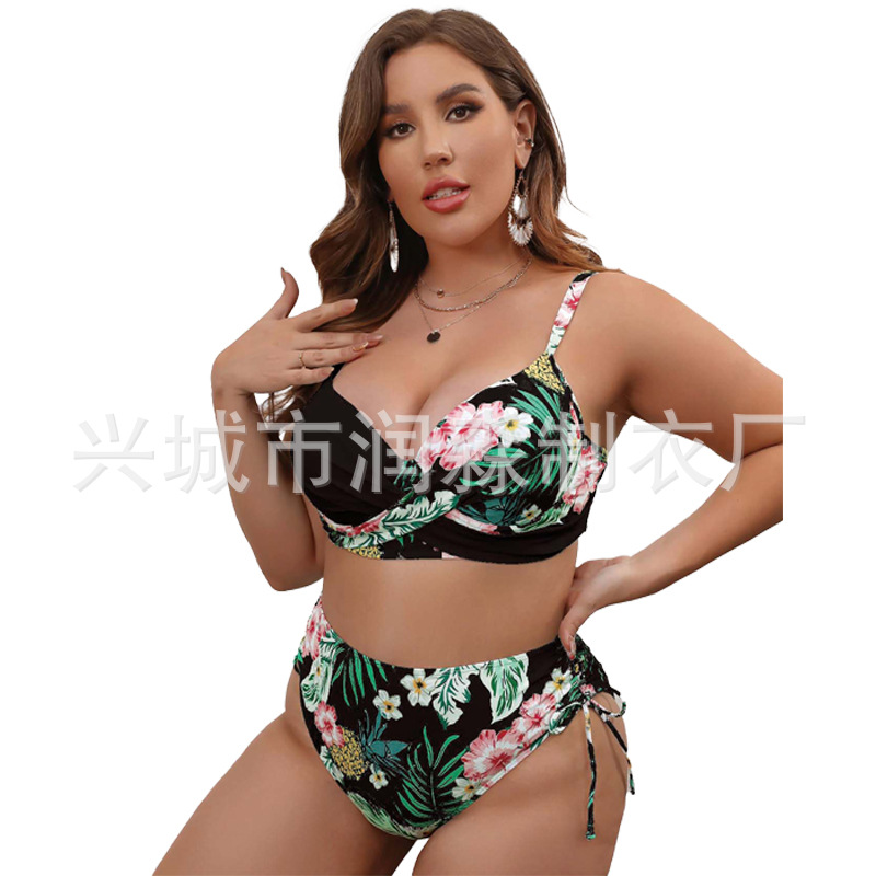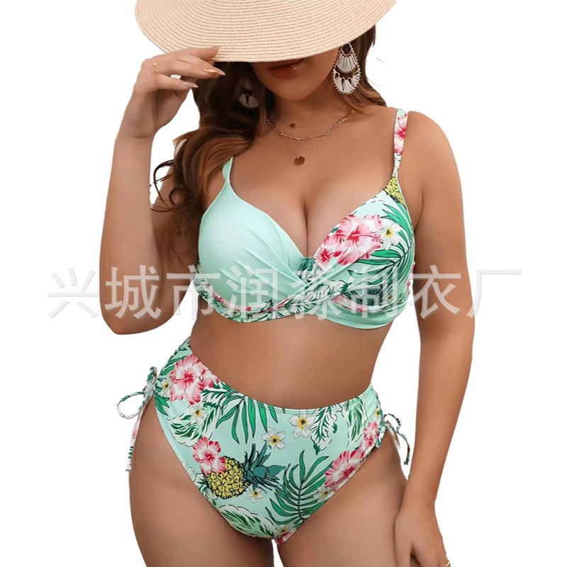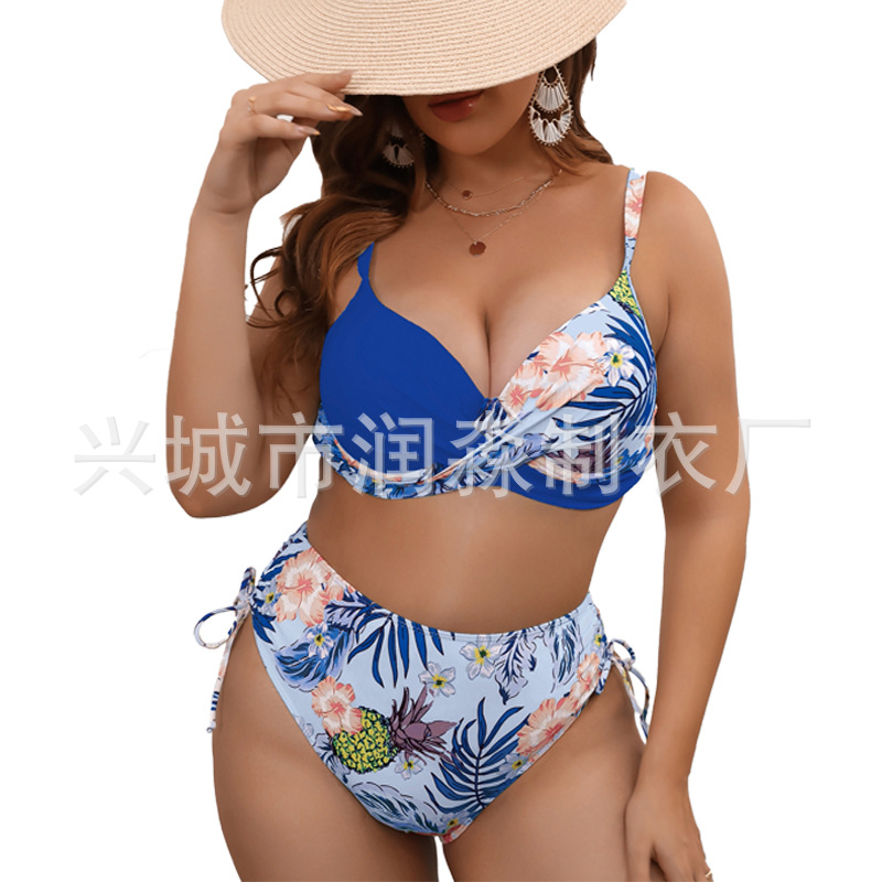 2023 새로운 유럽과 미국의 아마존 원피스 뚱뚱한 여자 플러스 사이즈 비키니 프린트 푸시 업 크로스 타이트 수영복 여성
