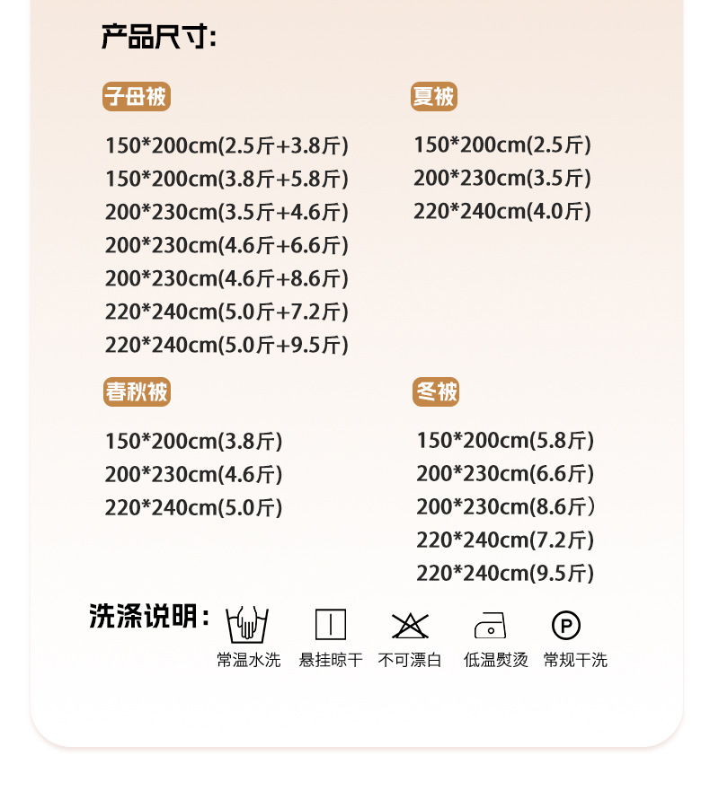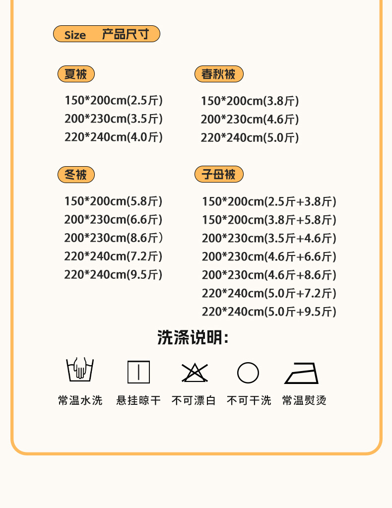 温馨提醒:由于家纺床上用品成本较高,一经水洗不管什么原因,不予退换,收到货后请 先检查仔细(检查花色和尺寸是否正确,面料有无瑕疵),确认无误后方可!