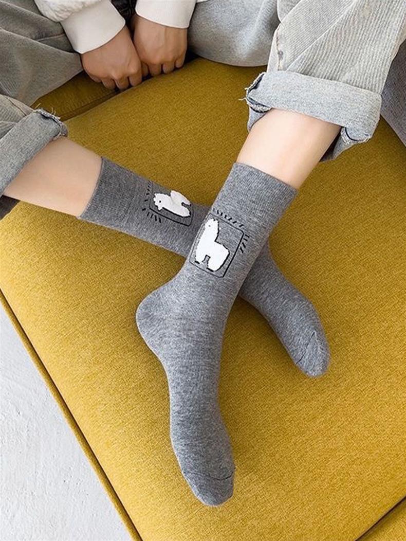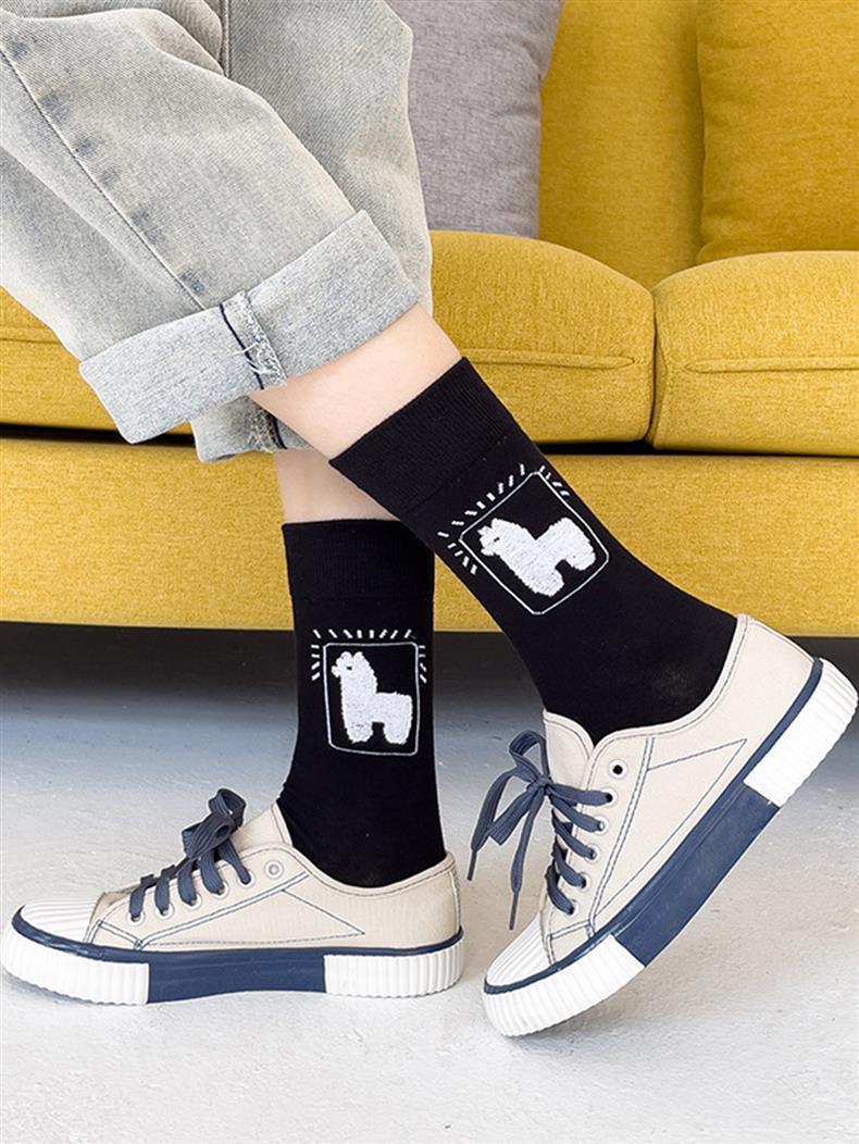 양말 여성의 봄과 가을 중간 길이 양말 귀여운 만화 흑백 알파카 여성 양말 모든 경기 대학 스타일 스타킹스토어 가기