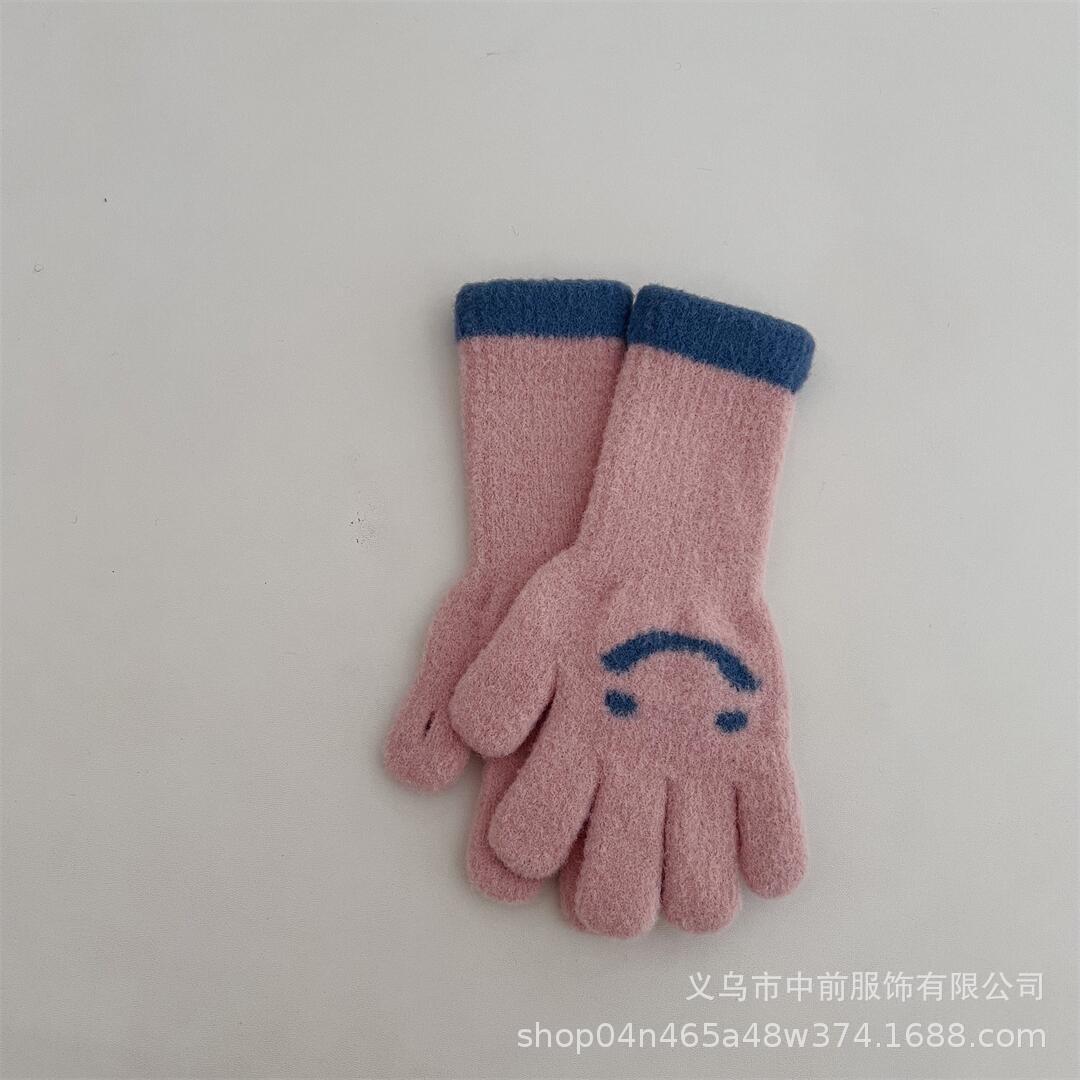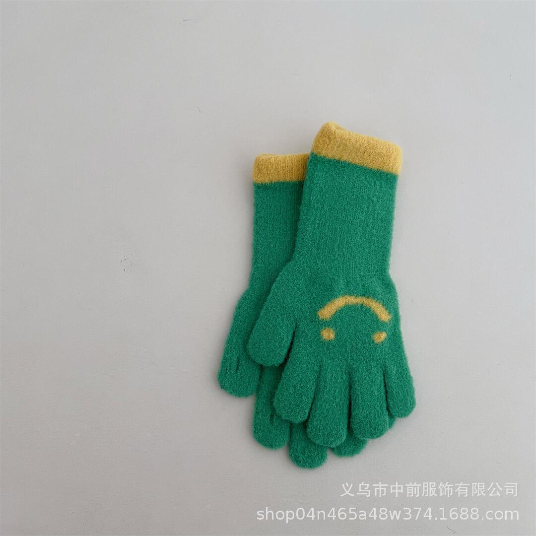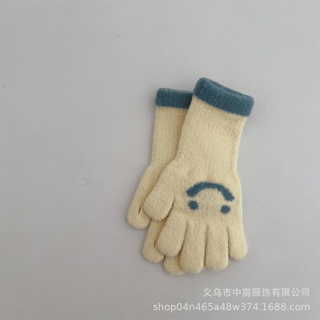 겨울 어린이 터치 스크린 긴 웃는 얼굴 색상 일치 다섯 손가락 니트 장갑 소년과 소녀 아기 따뜻한 손가락 장갑