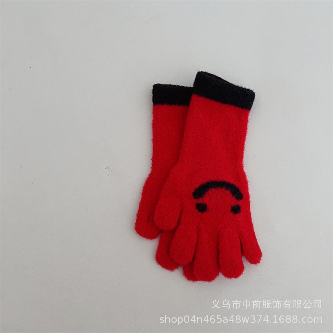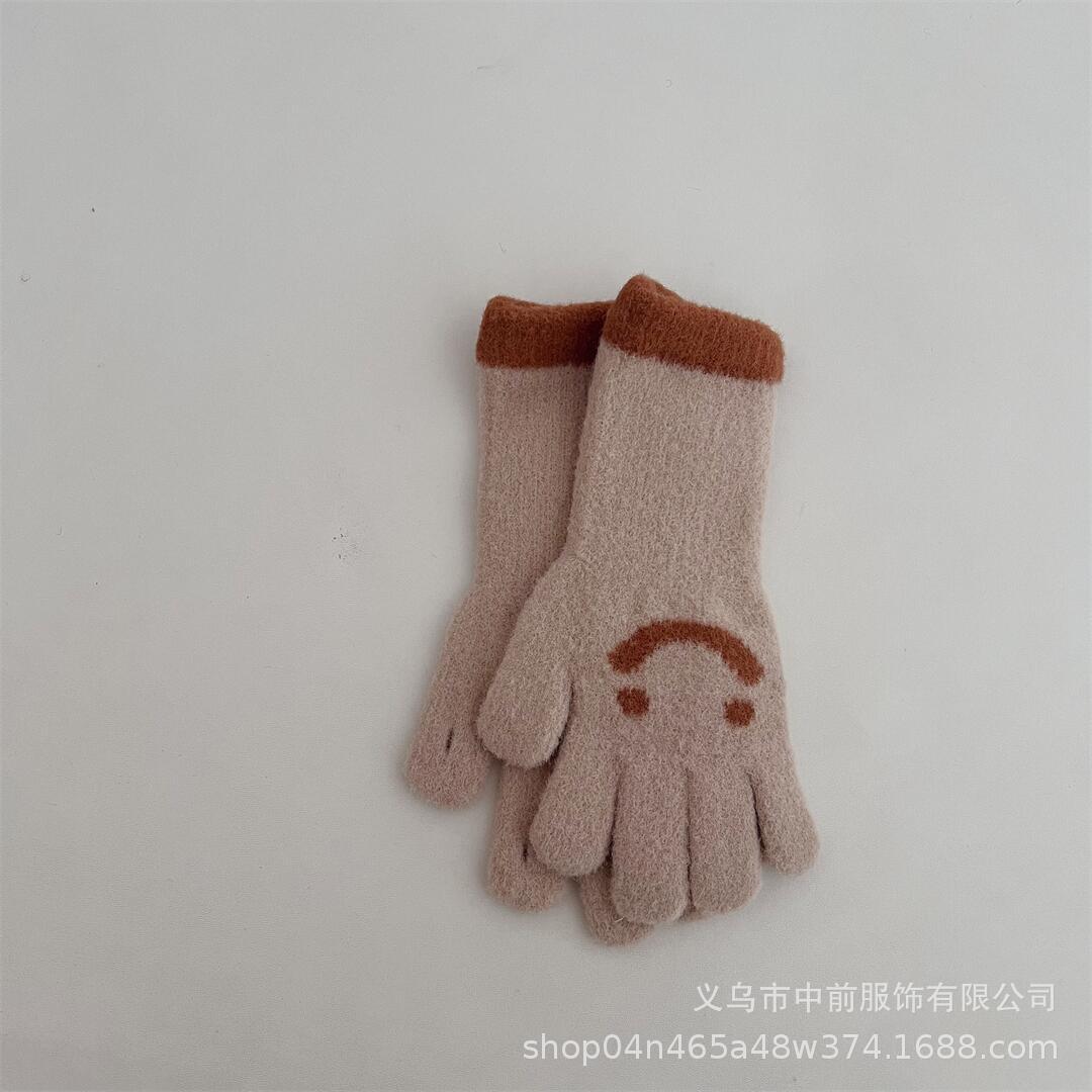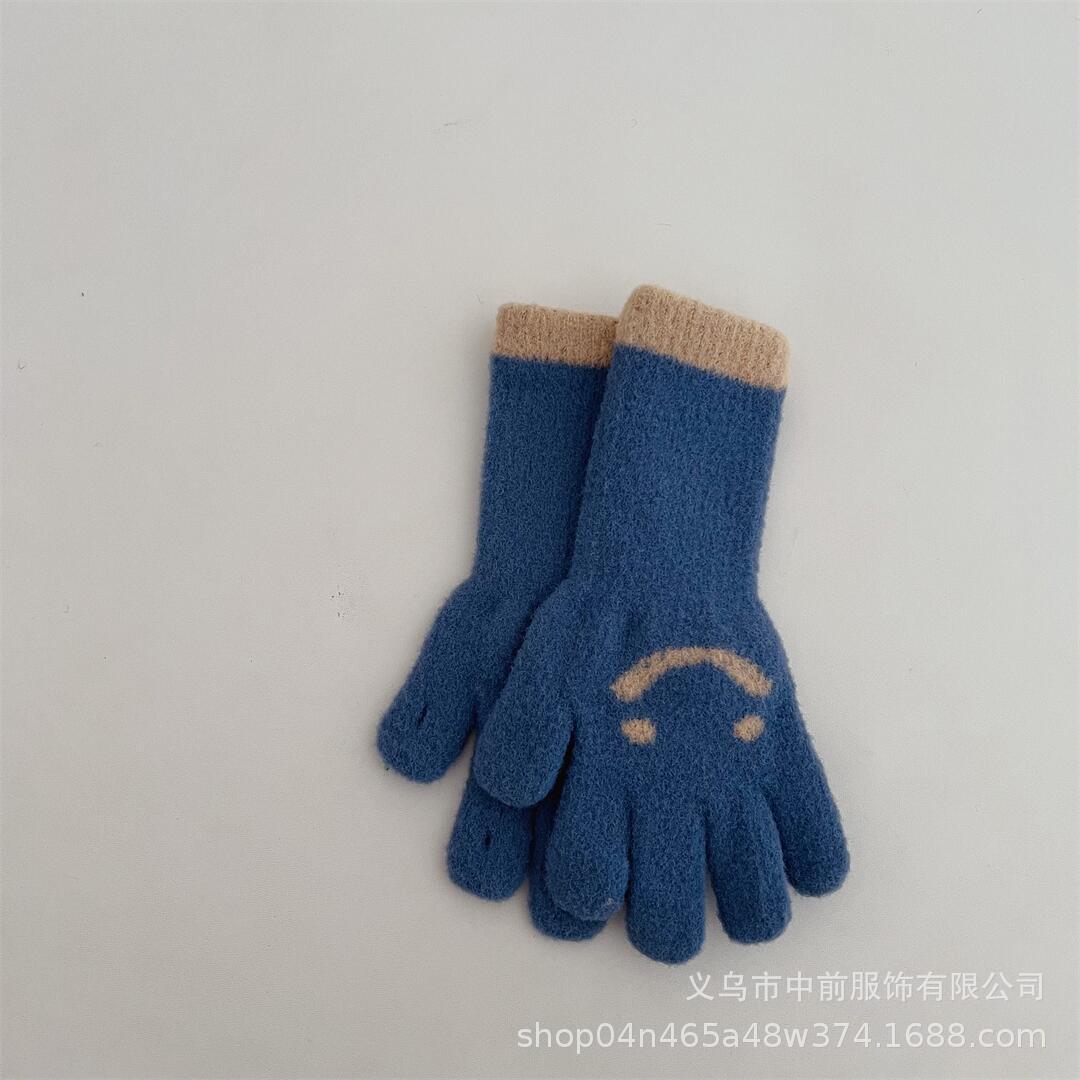 겨울 어린이 터치 스크린 긴 웃는 얼굴 색상 일치 다섯 손가락 니트 장갑 소년과 소녀 아기 따뜻한 손가락 장갑