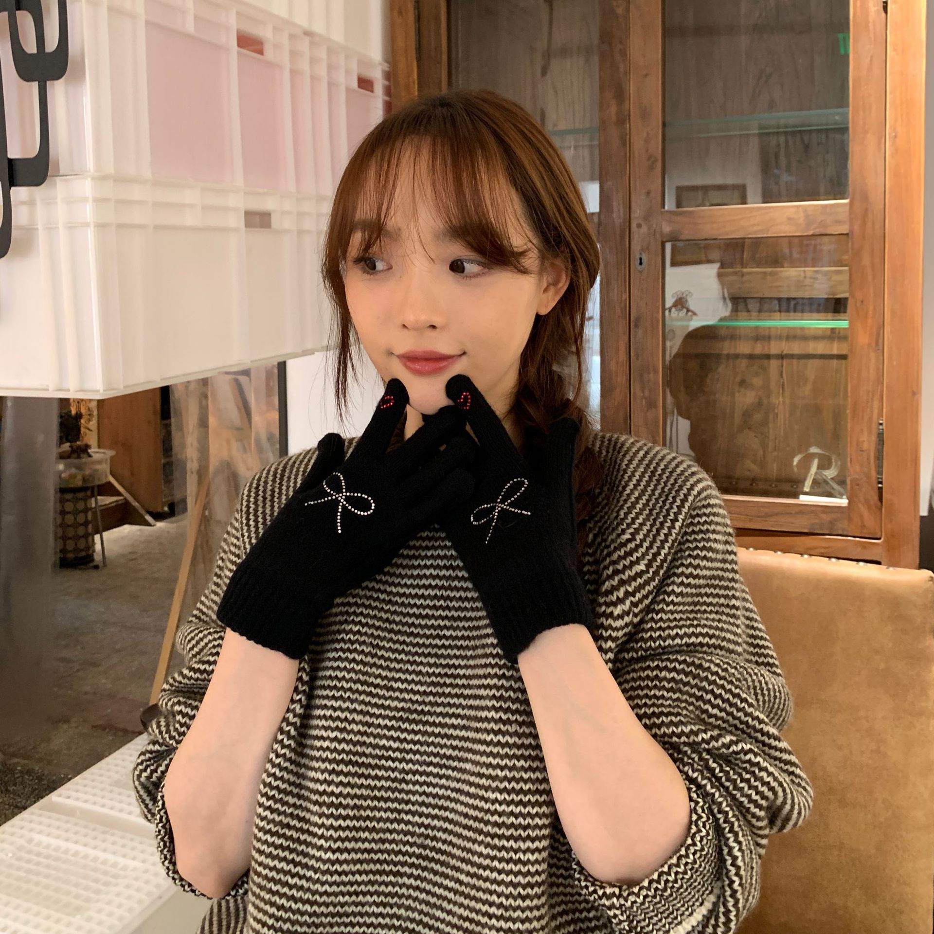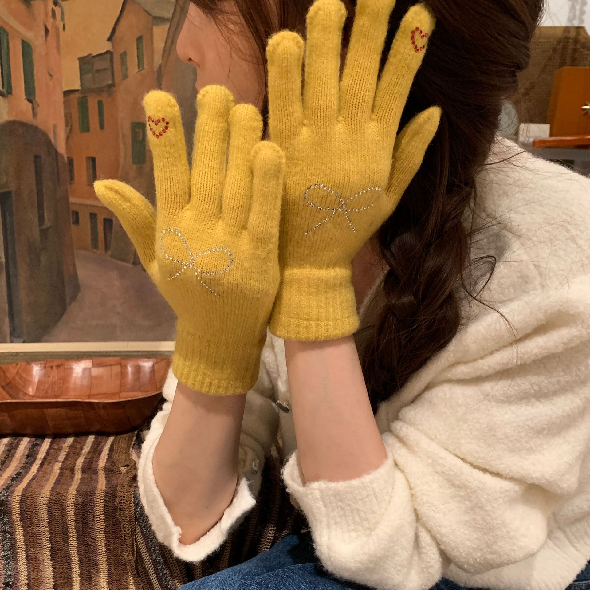 휴대 전화 장갑 양모 겨울 따뜻함을 재생하기 편리한 핫 드릴링 활 서브 핑거 유행 다섯 손가락 장갑스토어 가기