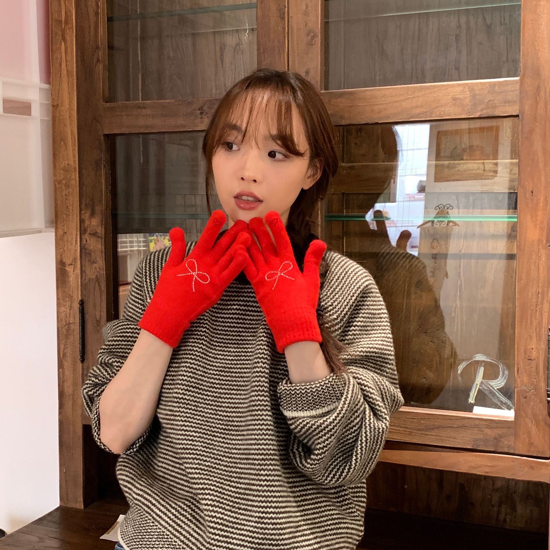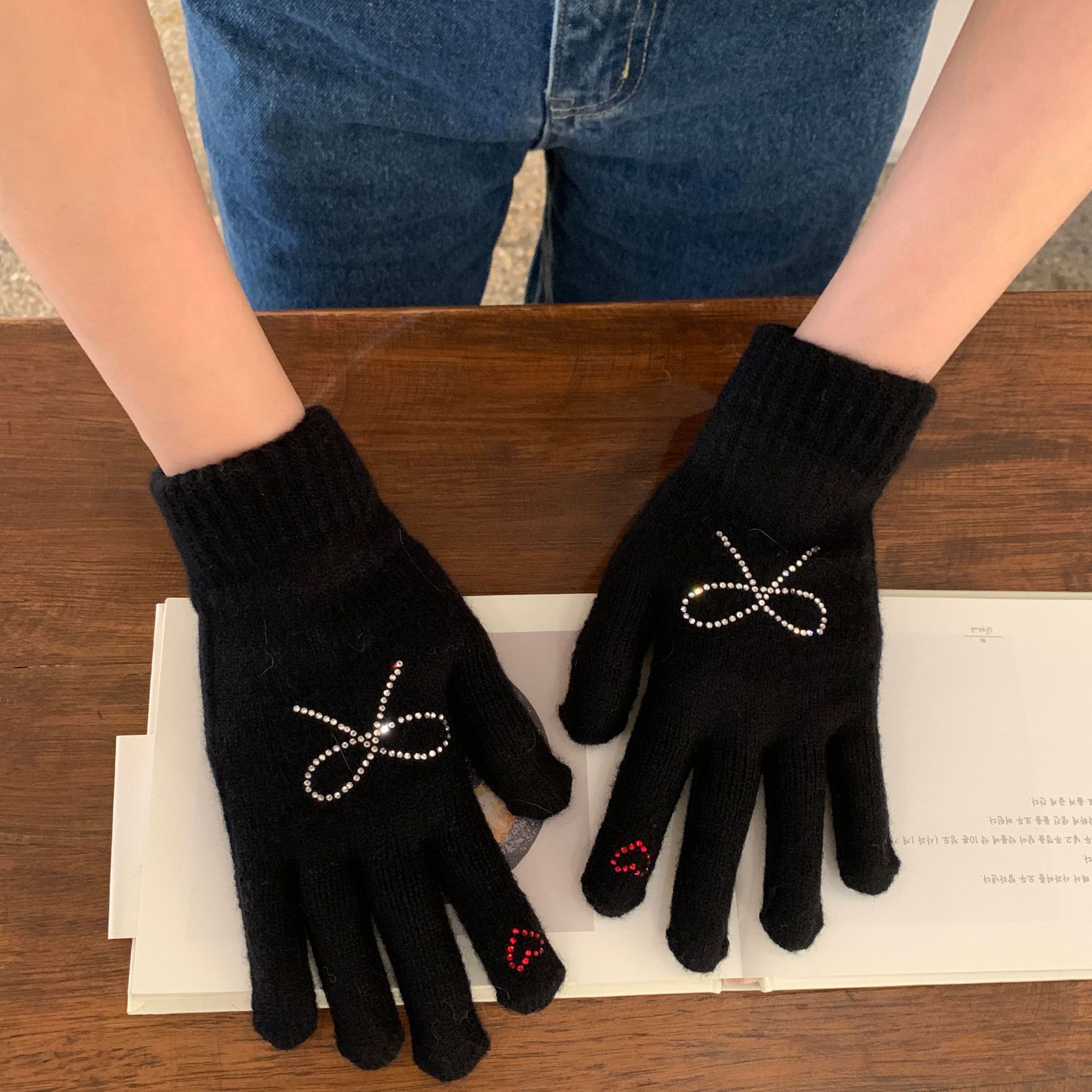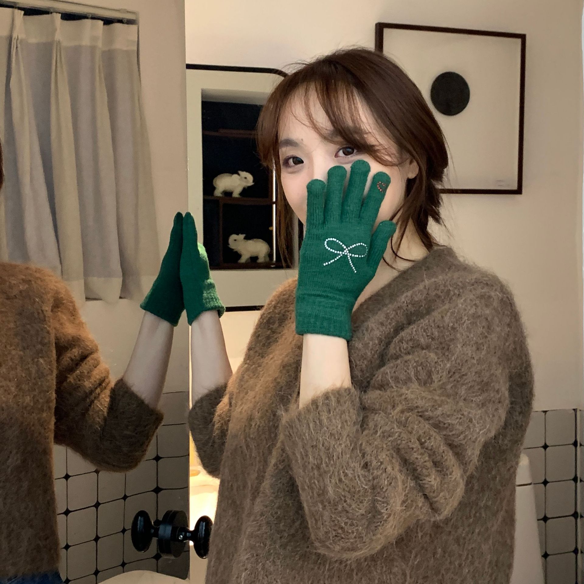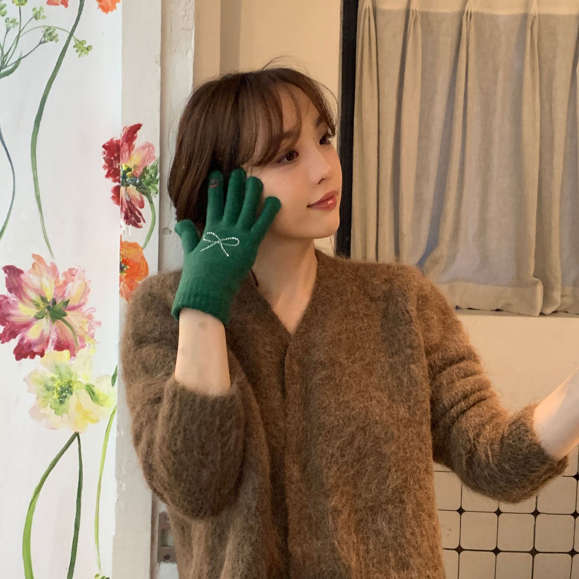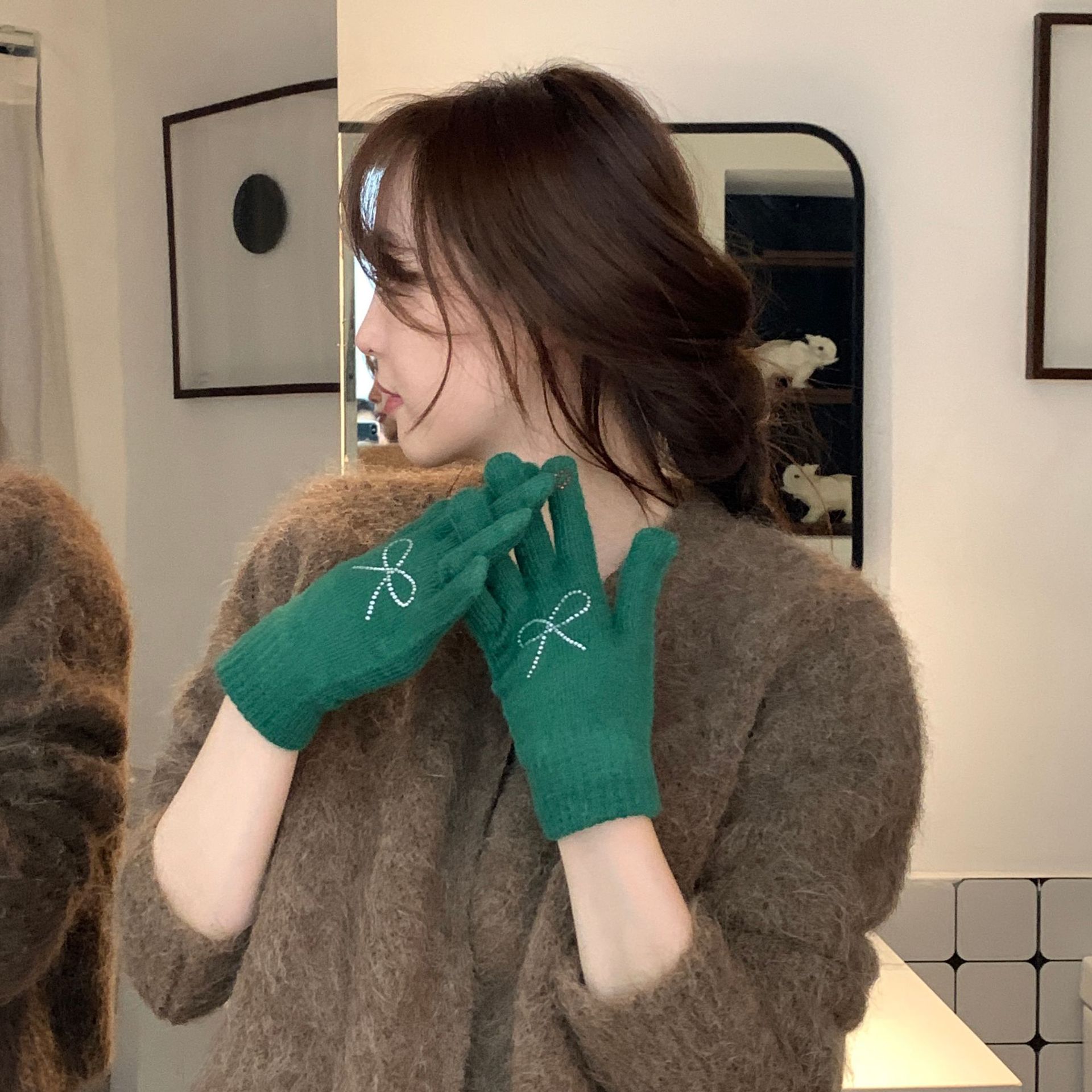 휴대 전화 장갑 양모 겨울 따뜻함을 재생하기 편리한 핫 드릴링 활 서브 핑거 유행 다섯 손가락 장갑
