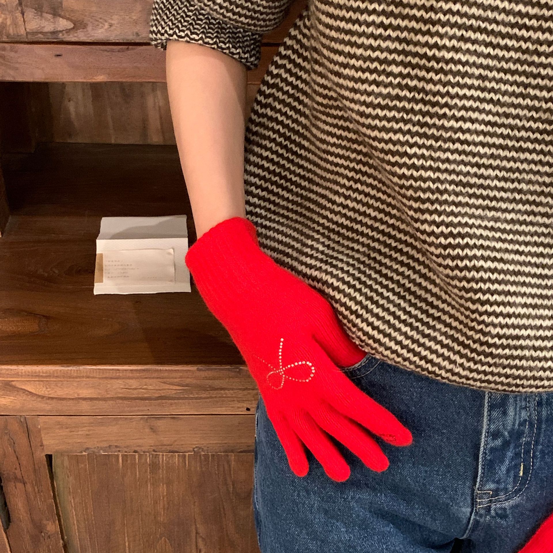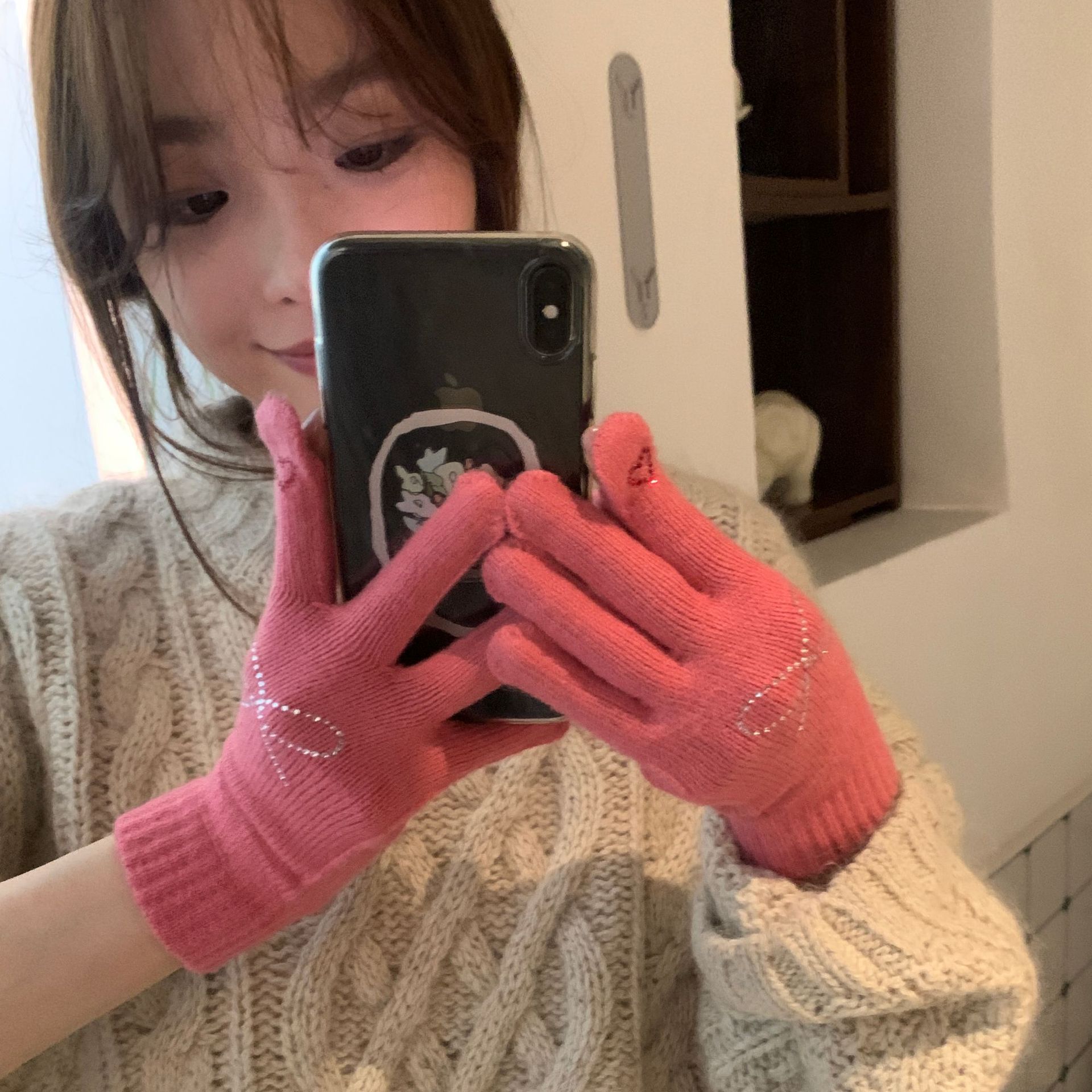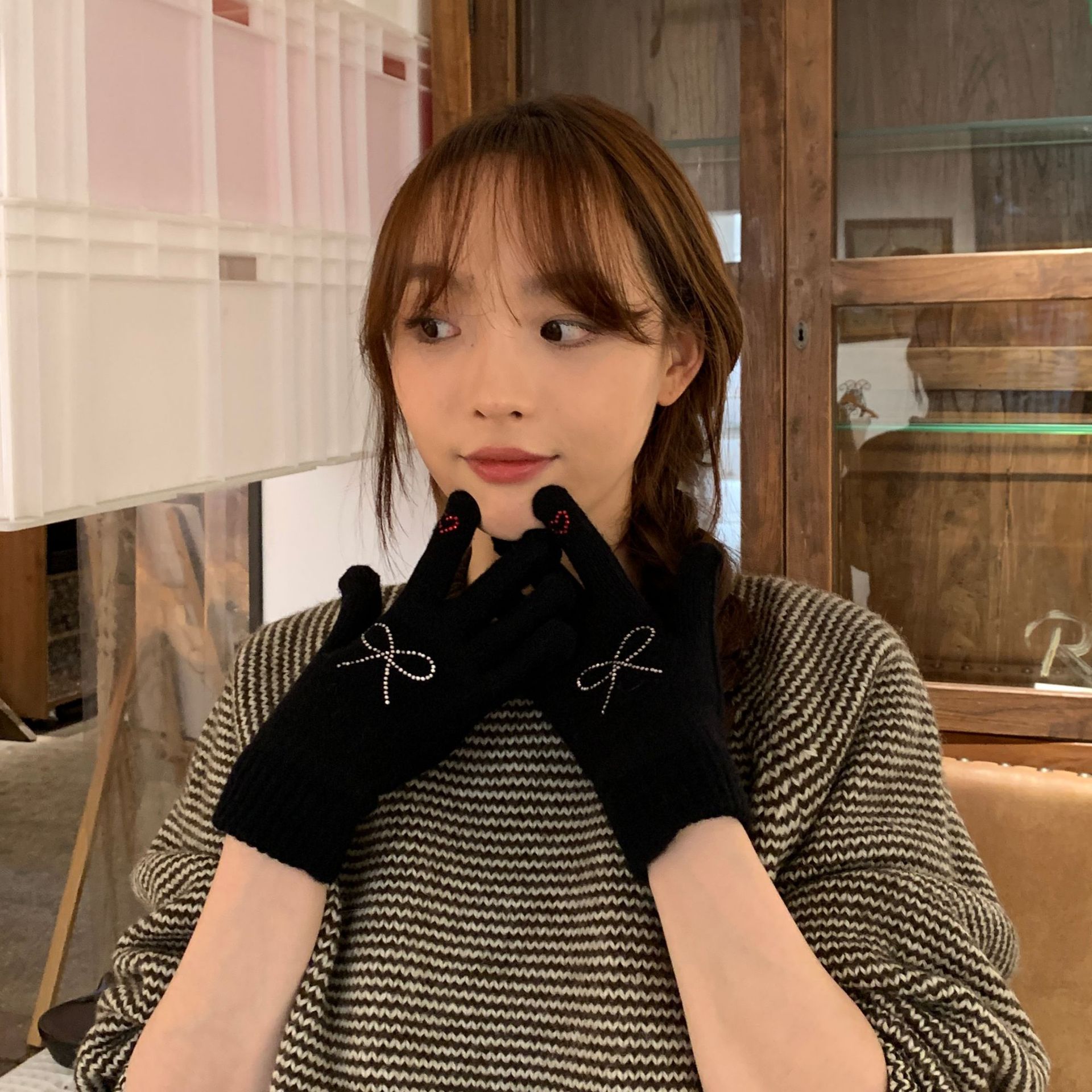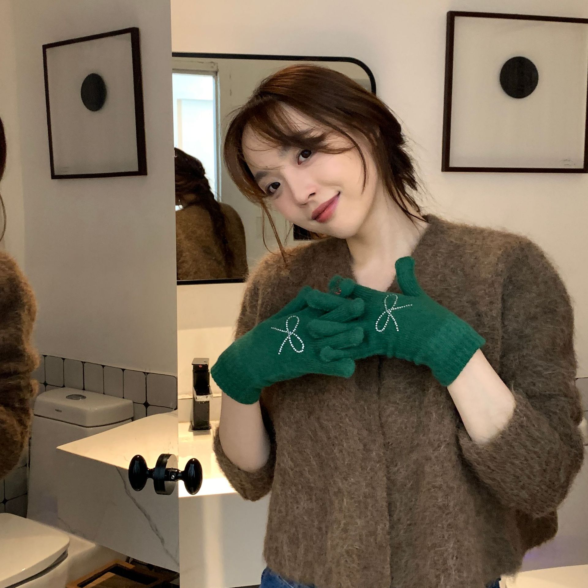 휴대 전화 장갑 양모 겨울 따뜻함을 재생하기 편리한 핫 드릴링 활 서브 핑거 유행 다섯 손가락 장갑