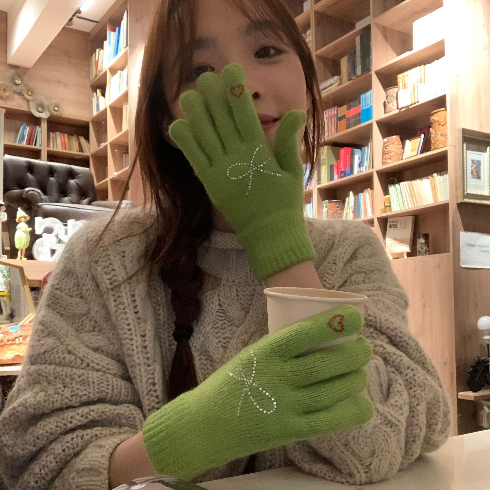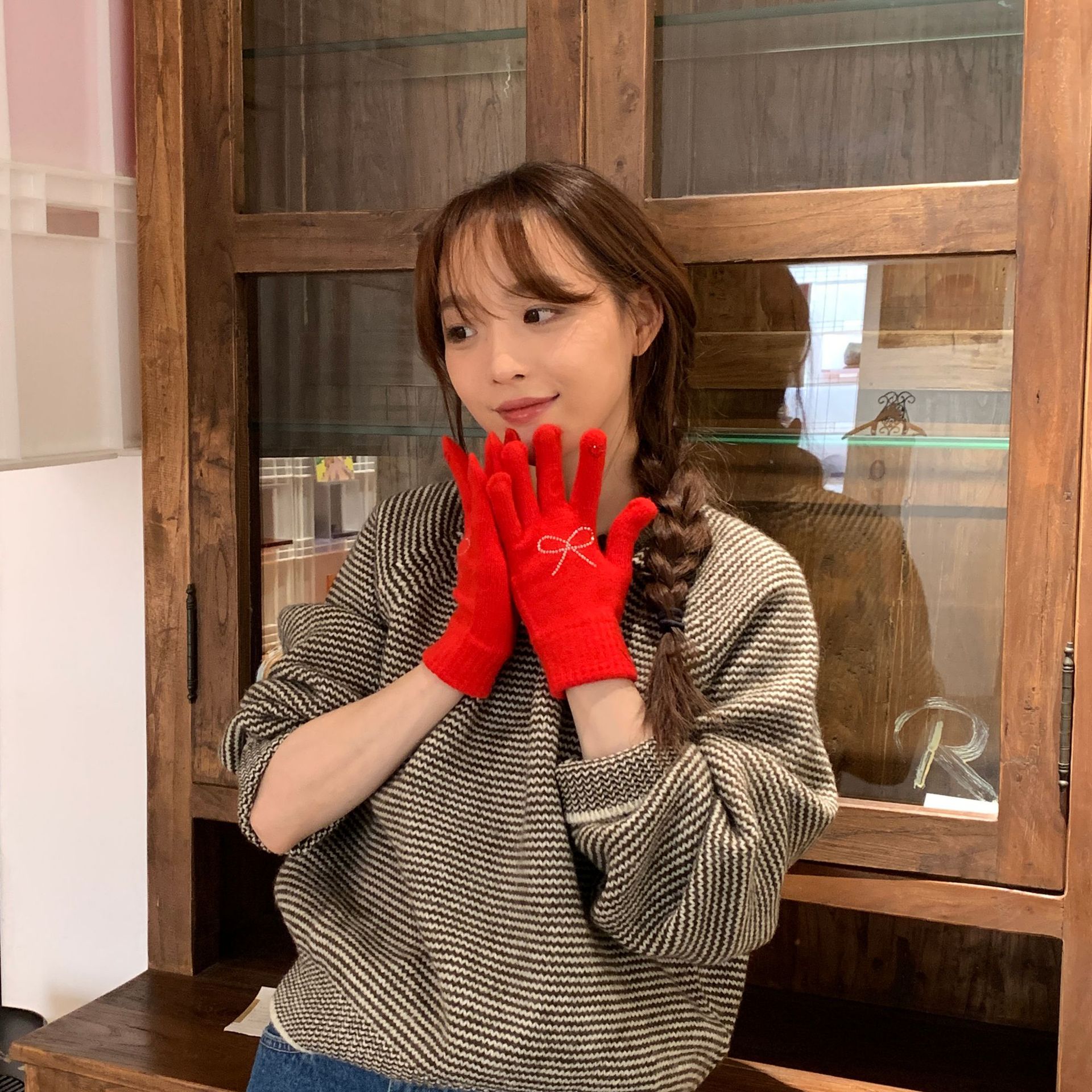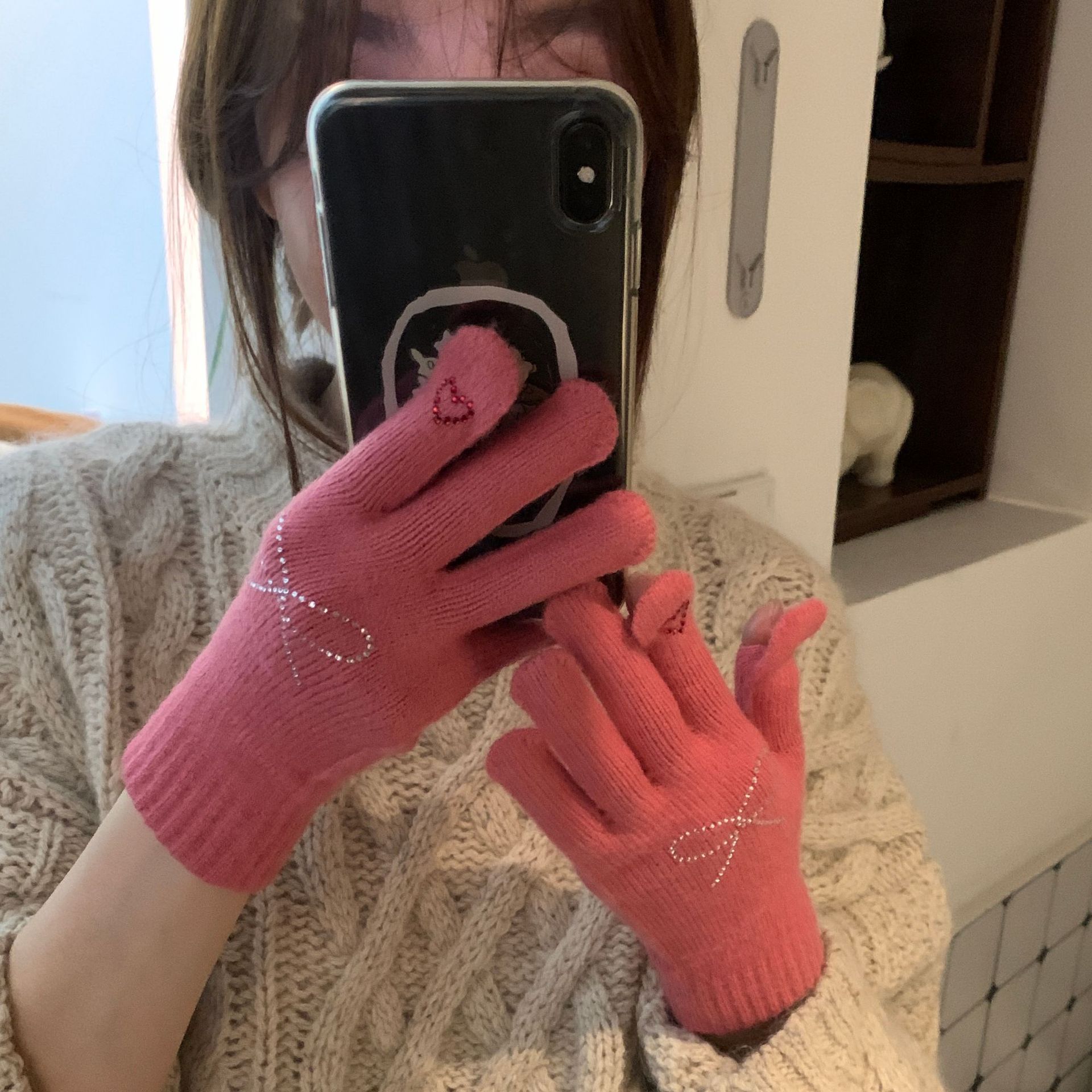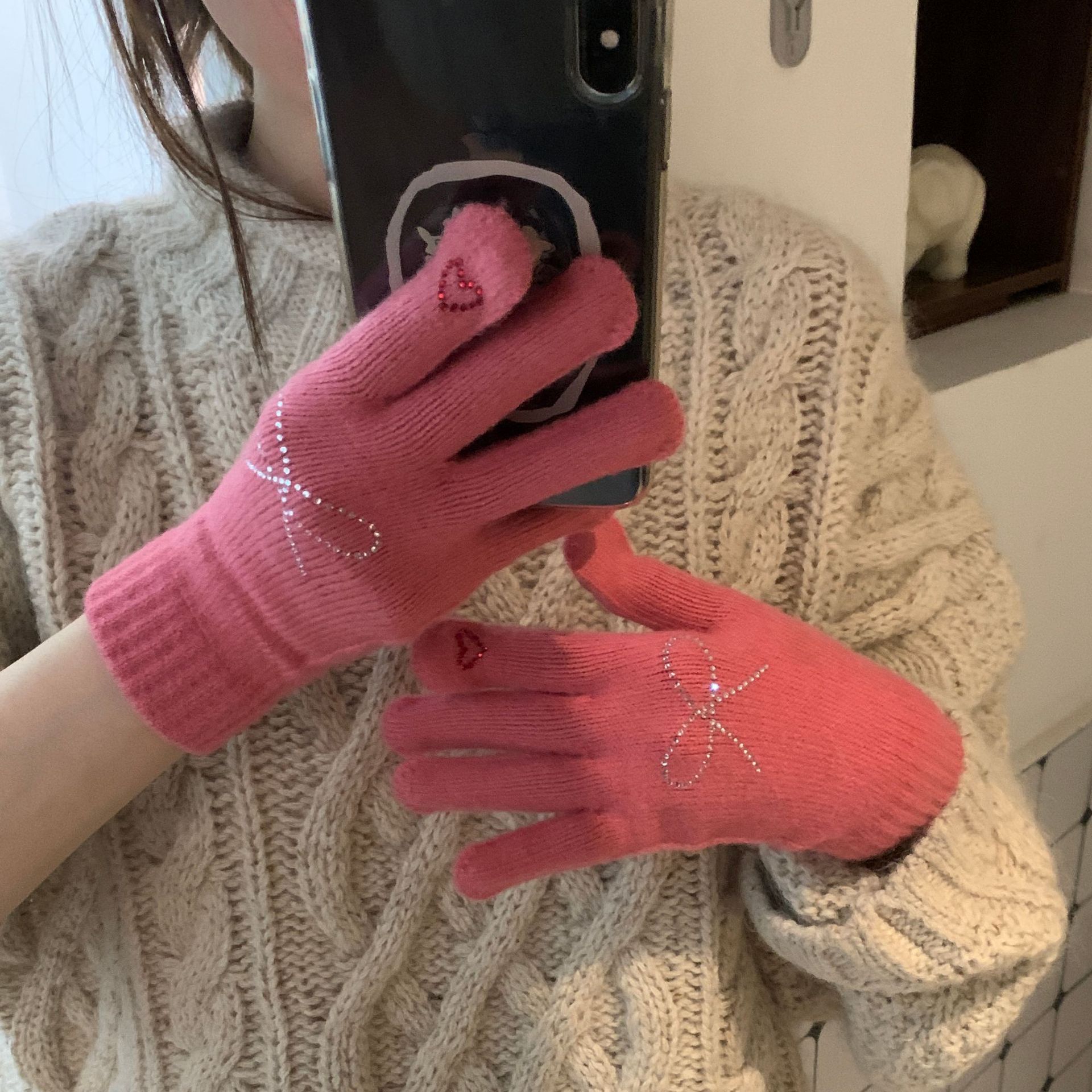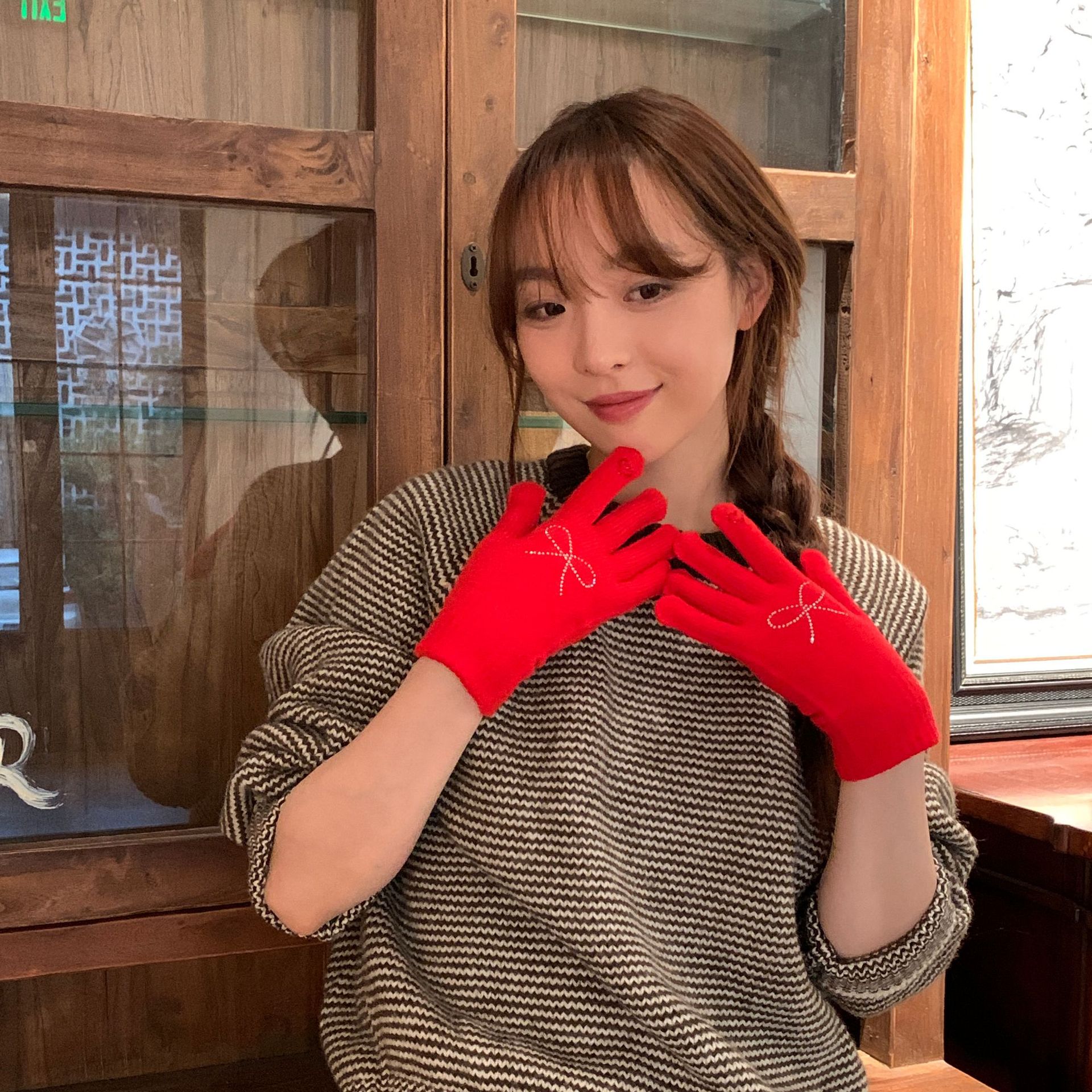 휴대 전화 장갑 양모 겨울 따뜻함을 재생하기 편리한 핫 드릴링 활 서브 핑거 유행 다섯 손가락 장갑