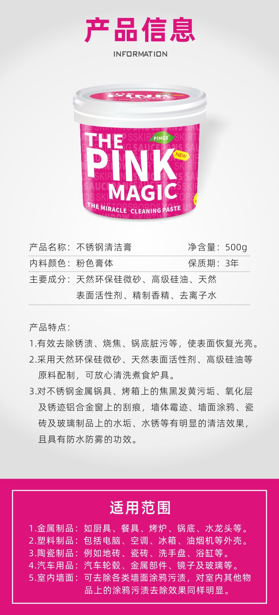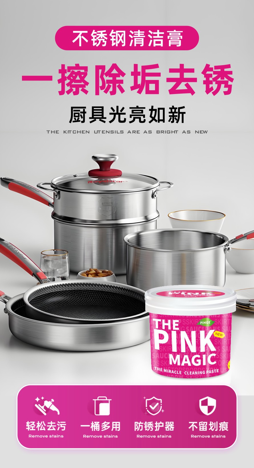 (국경 간) 스테인레스 스틸 청소 페이스트 500g 주방 청소 세제 냄비 연마 녹 제거 세제